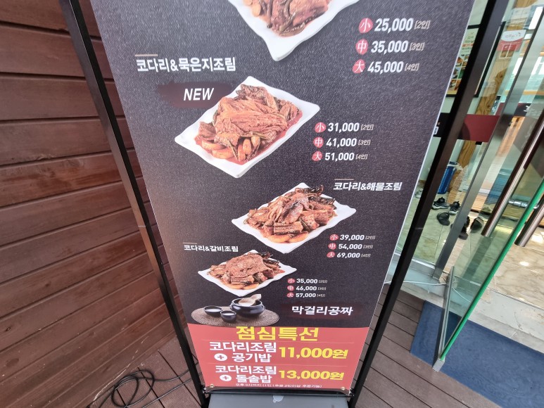 평일날 점심특선은 가성비 있는 메뉴가 제공됩니다. 1만 1천원이라고 하네요. 그냥은 두당 1만 5천원 정도 나옵니다.