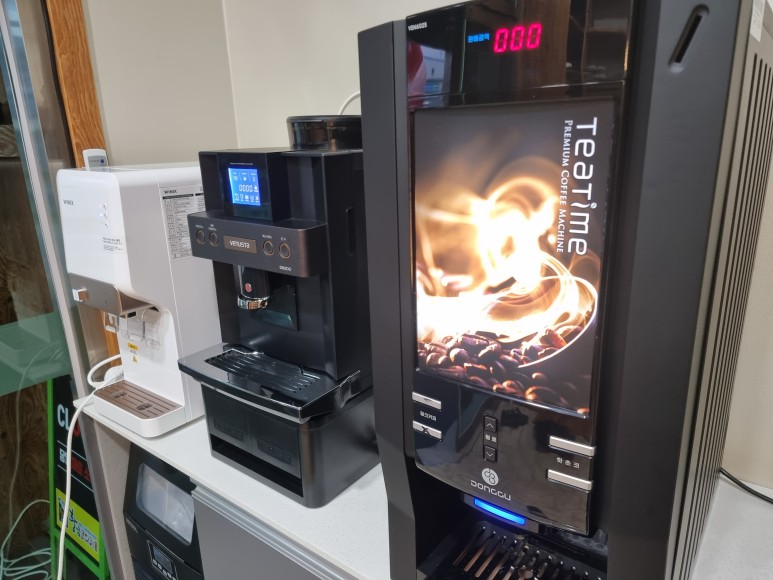 밥 다먹고 나가는 쪽에 커피 기계 있고 아래쪽에 얼음 있습니다. 셀프로 마음껏 먹으면 되는 시스템이네요. 밀크커피 먹어봤는데 맛 준수하고 후식으로 괜찮았습니다.