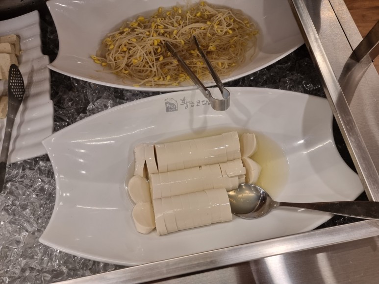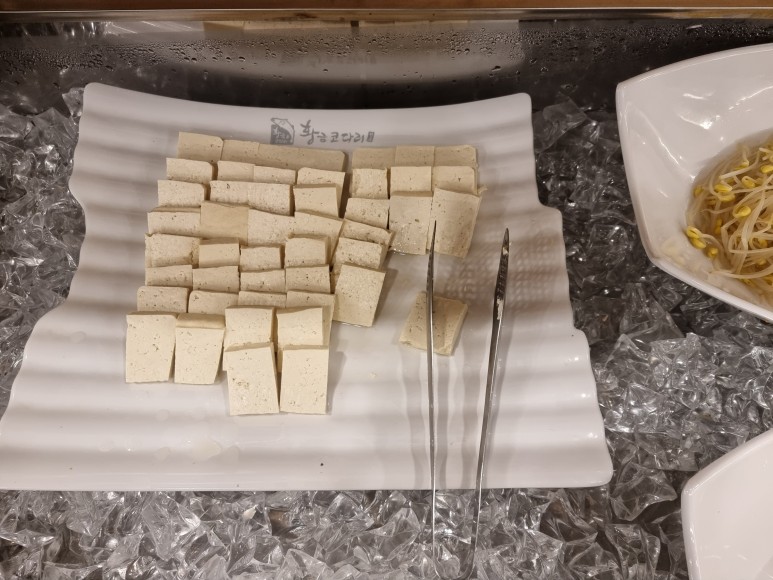 셀프바에 가면 두부가 있는데 리필해서 먹을 수 있습니다. 두부가 정말 맛있더라고요!