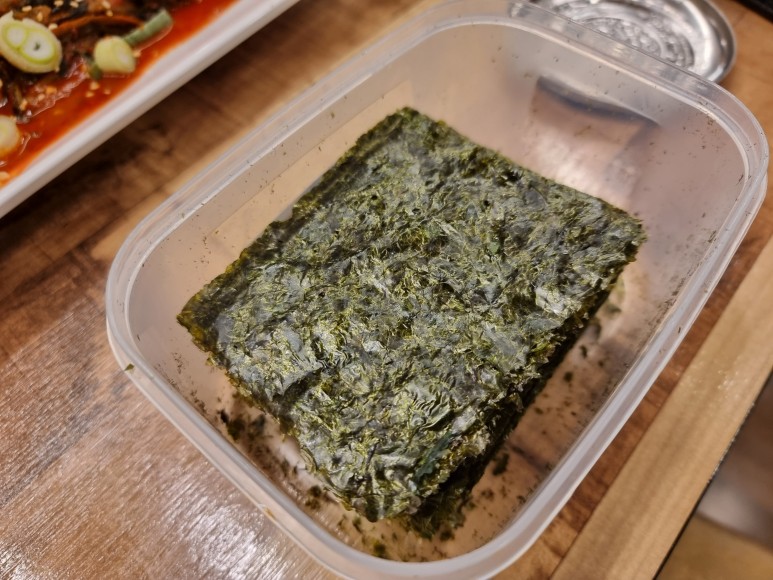 각 테이블마다 1통씩 김이 제공되는데요. 그냥 파래김이었어요. 돌김을 좋아해서...ㅎ