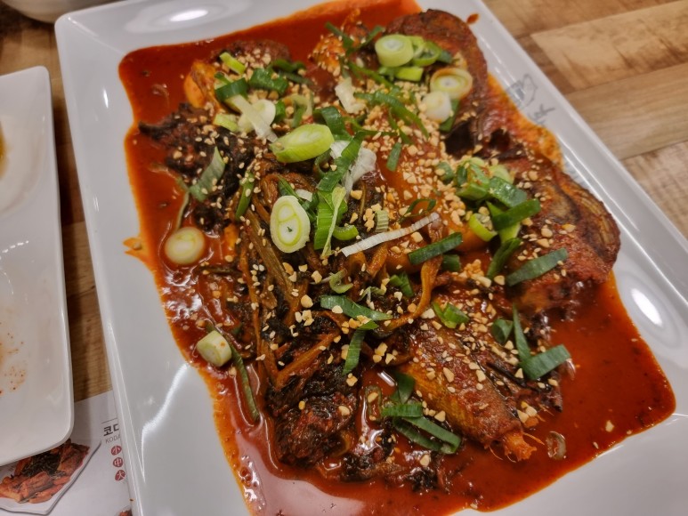 코다리 메인메뉴 등장입니다. 코다리 큰 거 2마리인가 들어 있었어요. 2인 기준입니다. 가시가 좀 있긴한데 양념 맛이 나쁘지 않았어요.