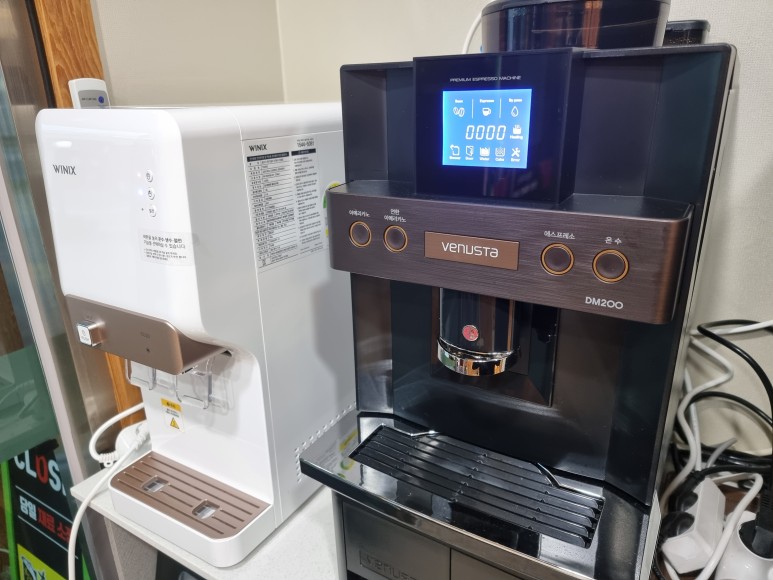 밥 다먹고 나가는 쪽에 커피 기계 있고 아래쪽에 얼음 있습니다. 셀프로 마음껏 먹으면 되는 시스템이네요. 밀크커피 먹어봤는데 맛 준수하고 후식으로 괜찮았습니다.
