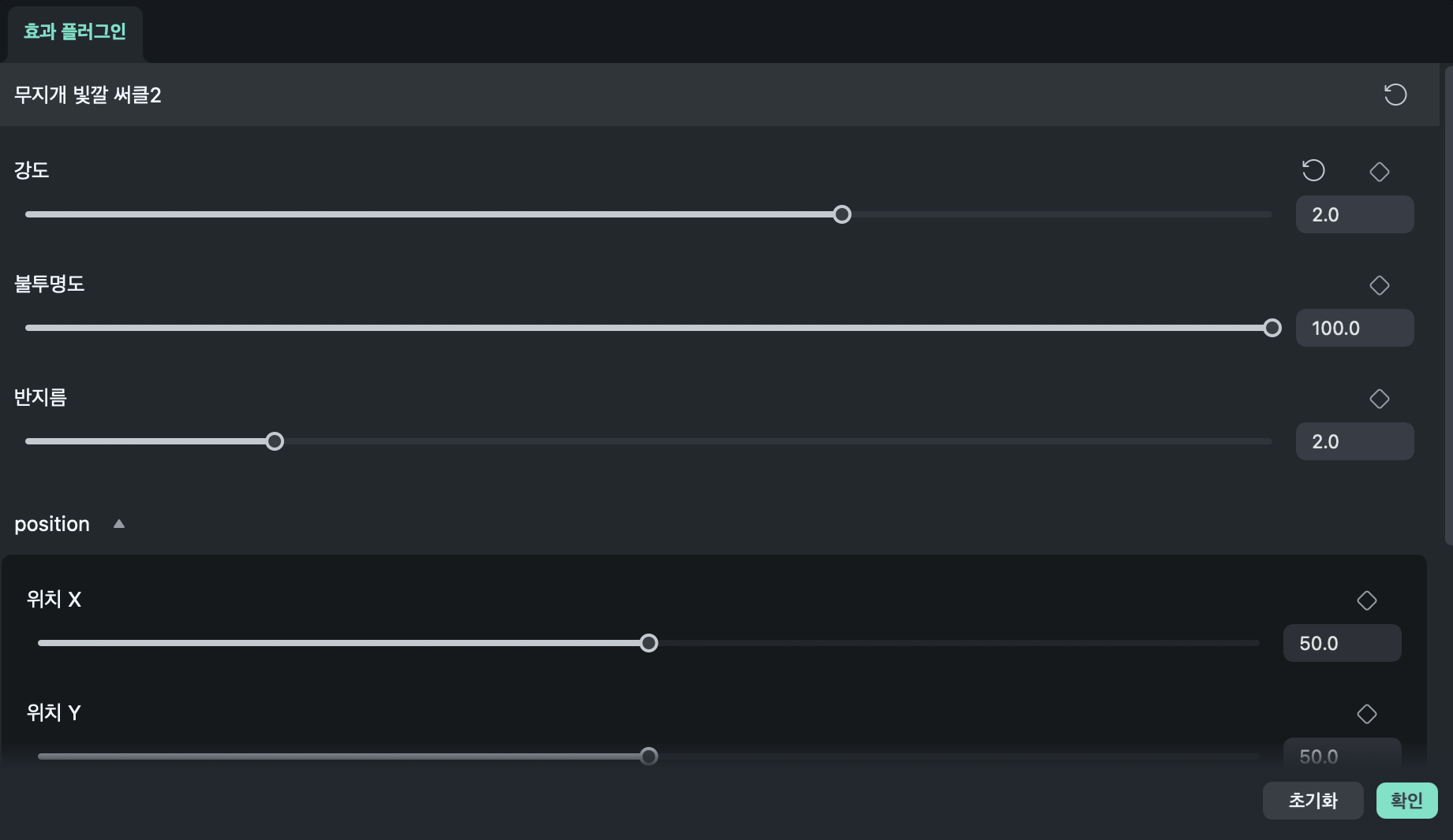 인스펙터에서 강도나 반지름, 위치 등을 조절할 수 있습니다.