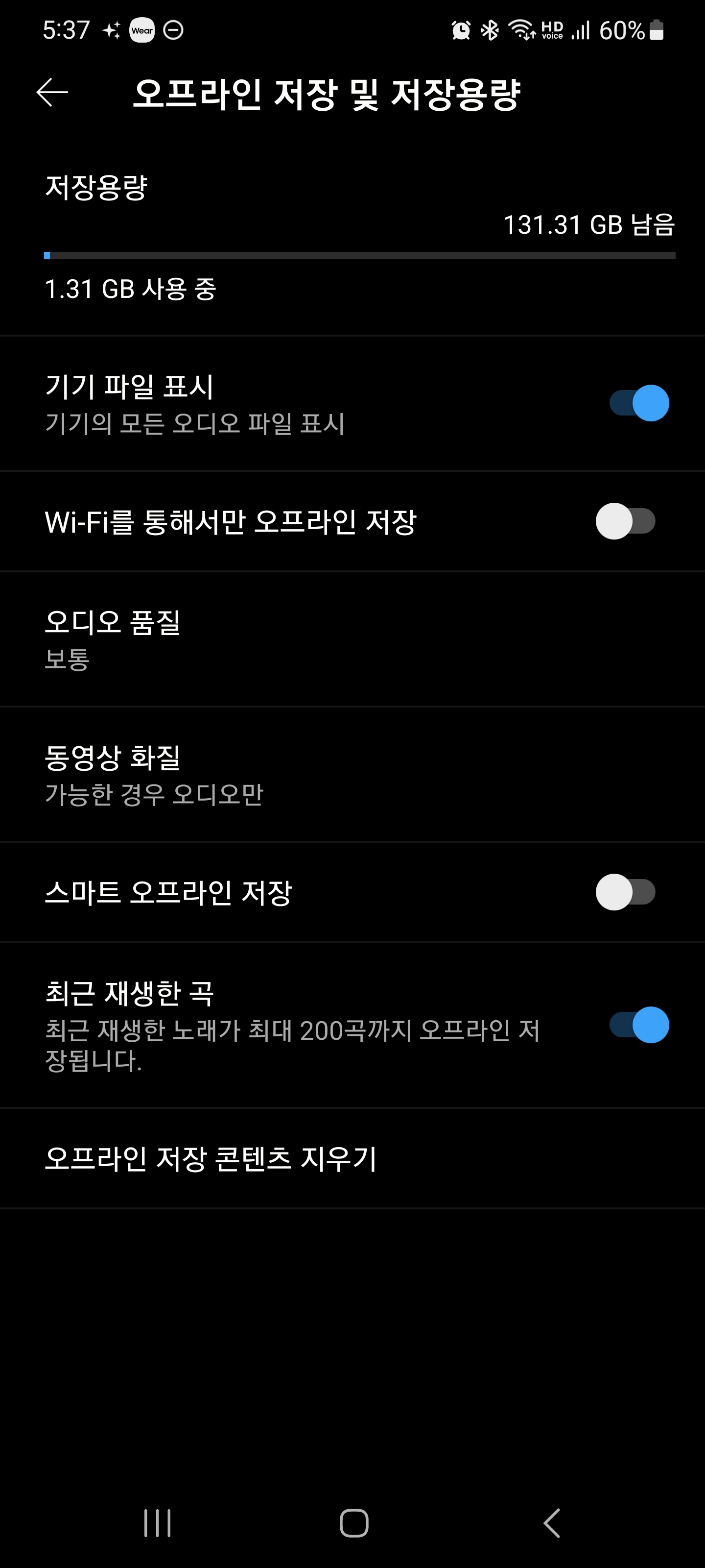 유튜브 뮤직 스마트 오프라인 저장 끄기