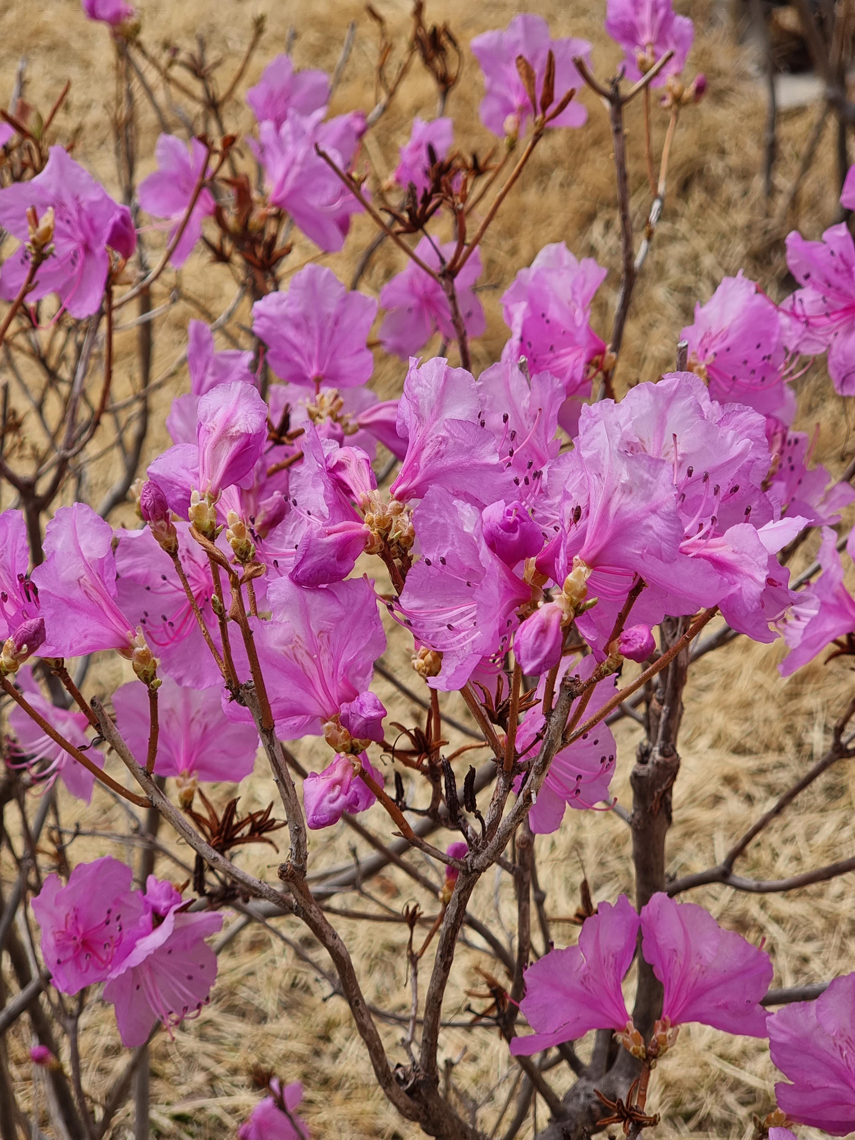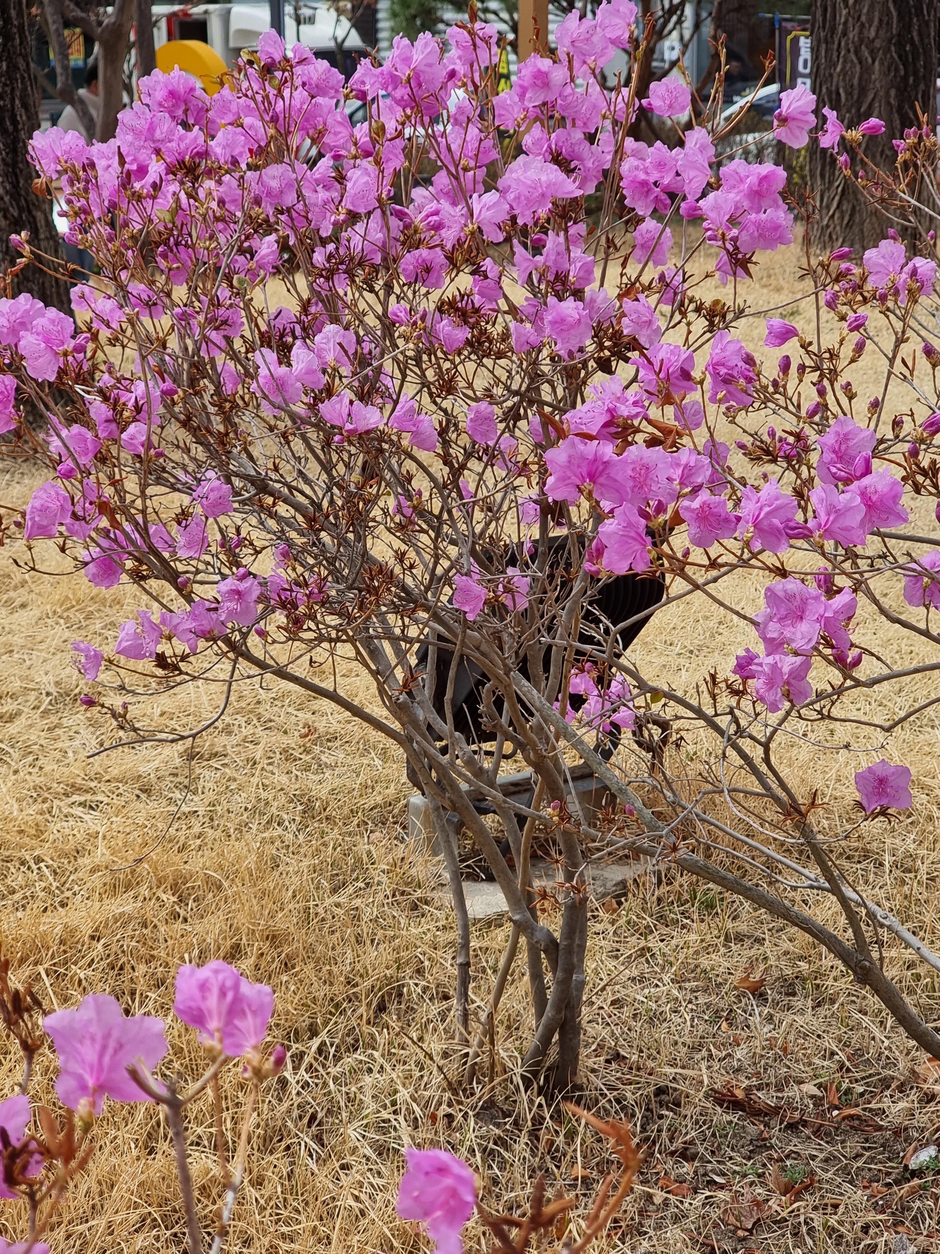 시립도서관 가는 길에 공원에는 진달래가 예쁘게 피었더라고요. 제 친구는 진달래가 할머니들이 좋아하는 꽃 같다면서 별로라고했지만, 저는 개인적으로는 진달래 좋아합니다. 색도 예쁘고요. 이름도 진달래라는게 참 예쁘게 느껴지더라고요.