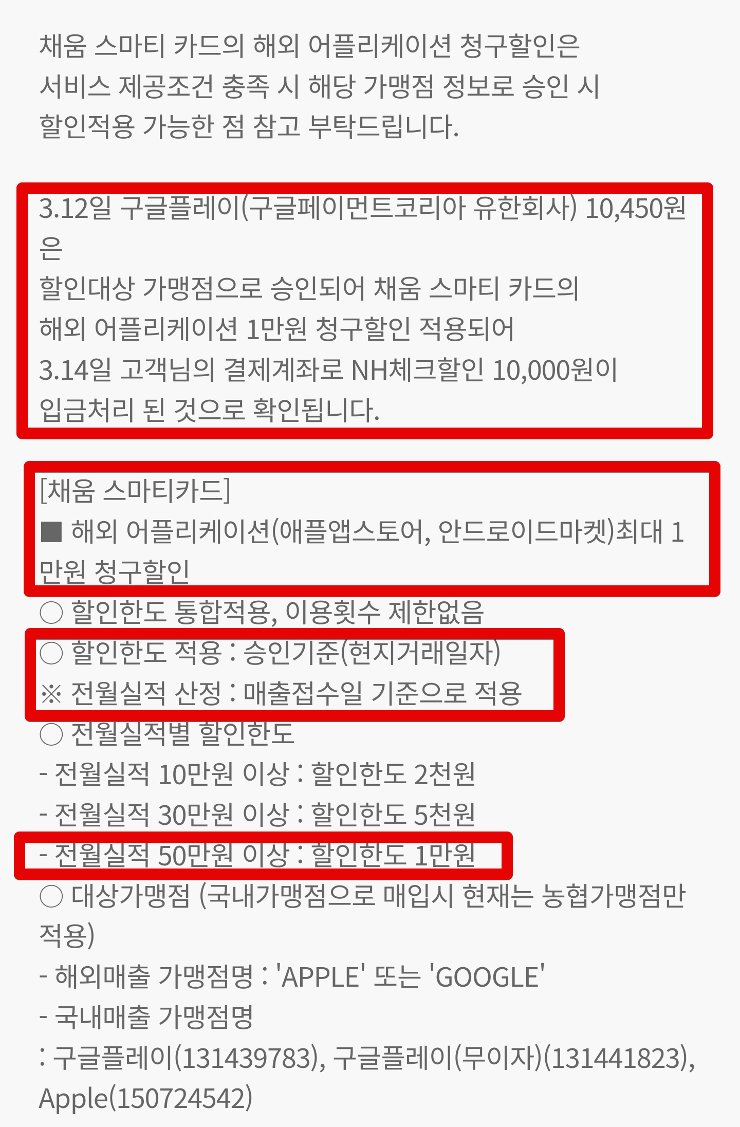 추가로 좀 더 정확한 확인을 위해서 농협카드 고객문의를 통해 확인해보았을 때에도 청구할인이 가능하다는 답변을 받았습니다.