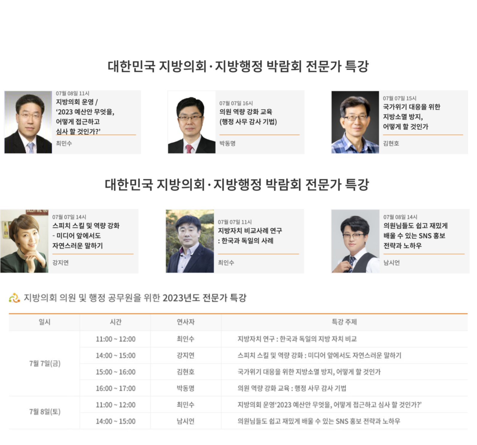 2023년 7월 7일부터 7월 9일까지 3일간 대전컨벤션센터 제2전시장에서 2023 대한민국 지방의회 지방행정 박람회가 열립니다. 저는 여기에 전문가 특강 스피커로 초청되어 세미나 특강에서 특강을 진행합니다.