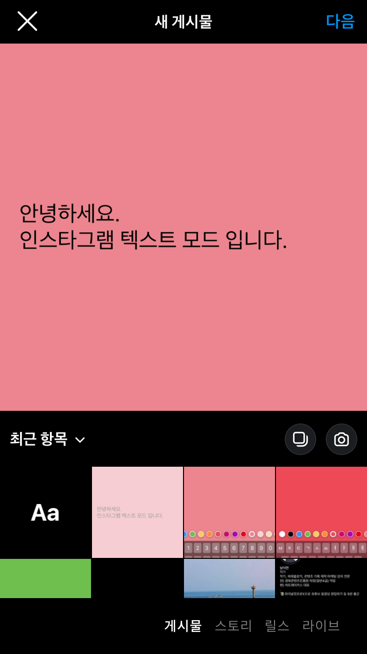 인스타그램 새로운 기능, 인스타그램 게시물 텍스트 모드 (text mode)