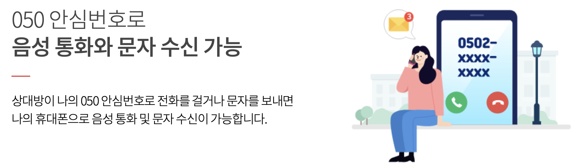050 개인 안심번호는 주로 전화나 문자를 수신하는 측에서 사용하는 것이며 개인이 휴대폰에서 가입할 경우 발신은 할 수 없습니다. 그러니까 이 번호는 수신 전용 번호라고 보시면 됩니다.