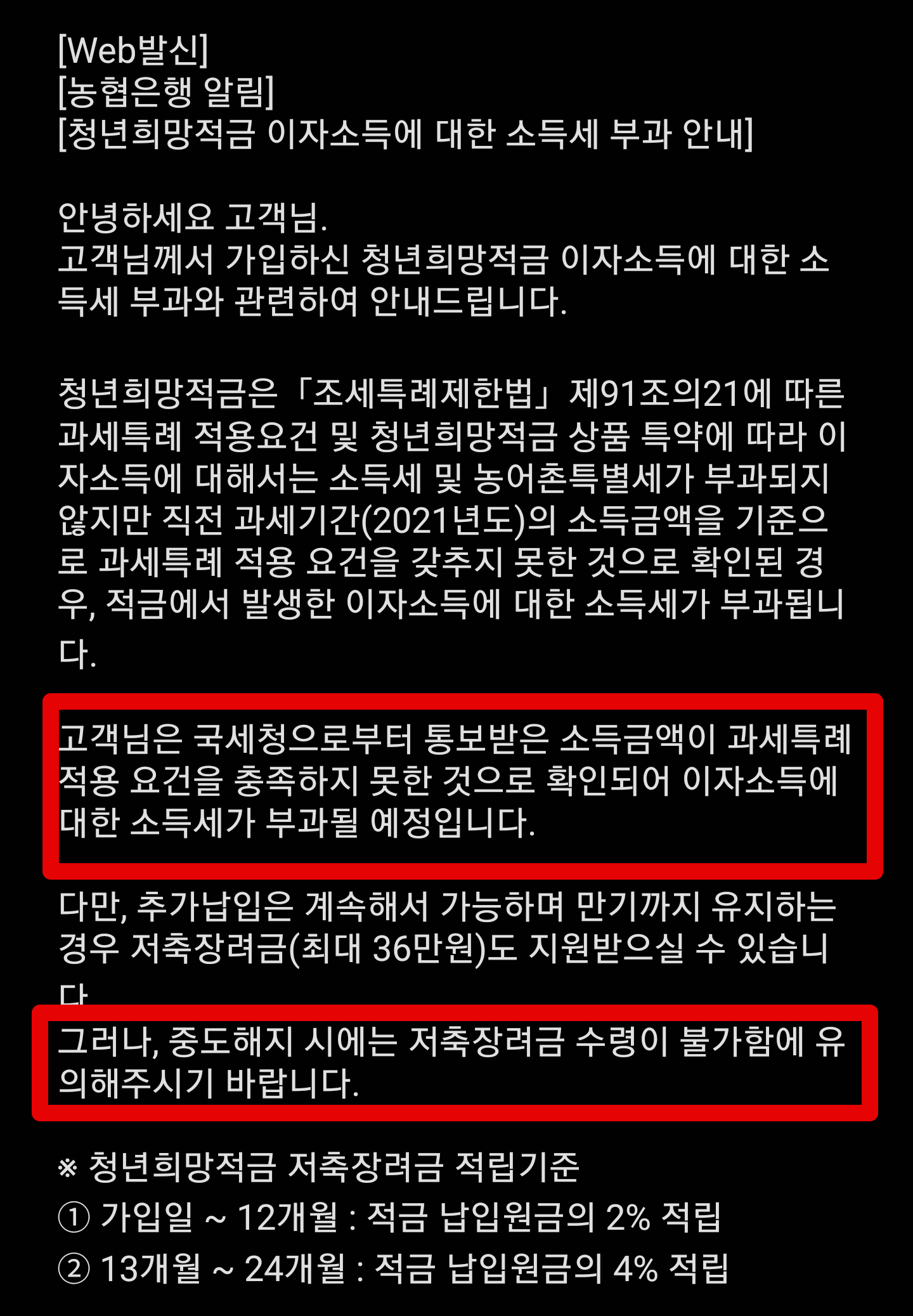 청년희망적금 이자소득에 대한 소득세 부과 득실 따져봤습니다
