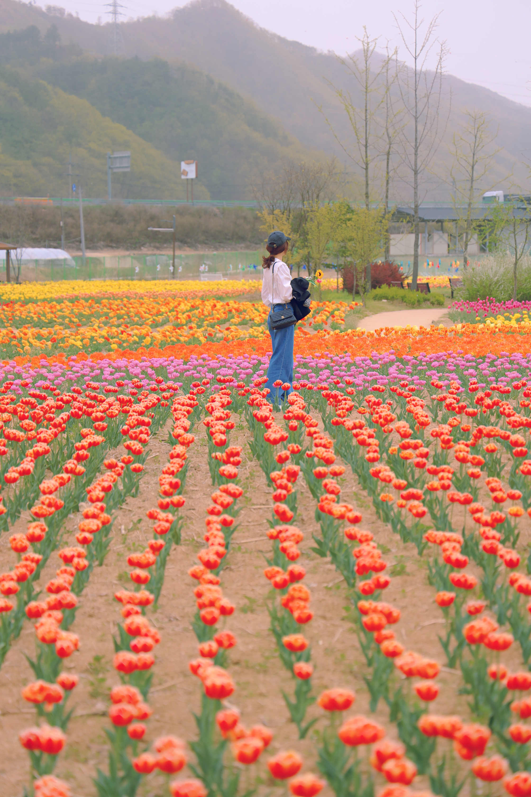 튤립들이 많아가지고 사진 찍기가 좋은 공간이에요. 매년 이맘때만 볼 수 있는 곳이라서 사람들에게 큰 인기가 있는 곳인데요. 튤립 자체가 작년에는 3만송이 였는데 올해는 뒷부분에 추가로 더 튤립을 식재하여서 5만송이를 하였다고 하더라고요.