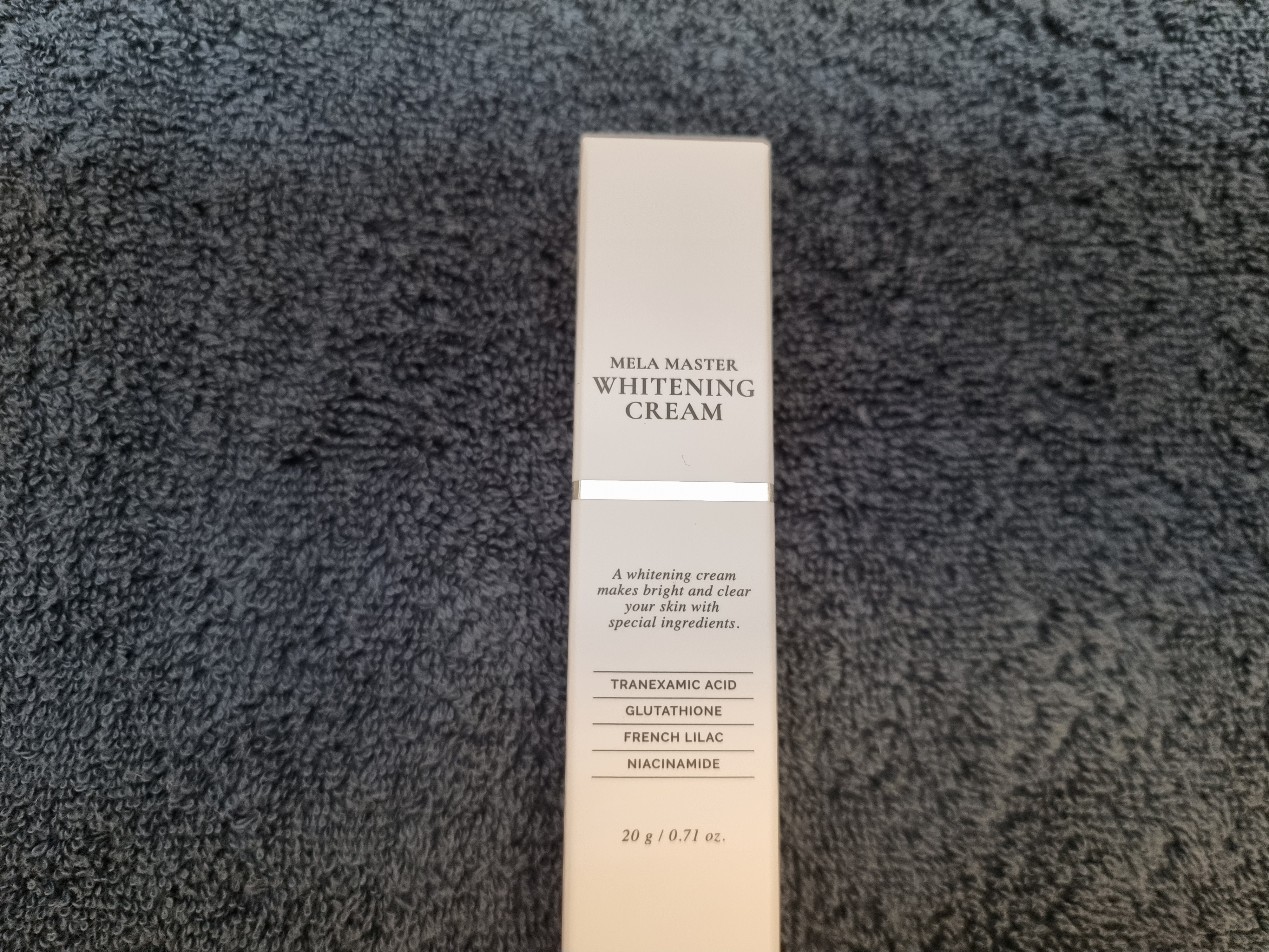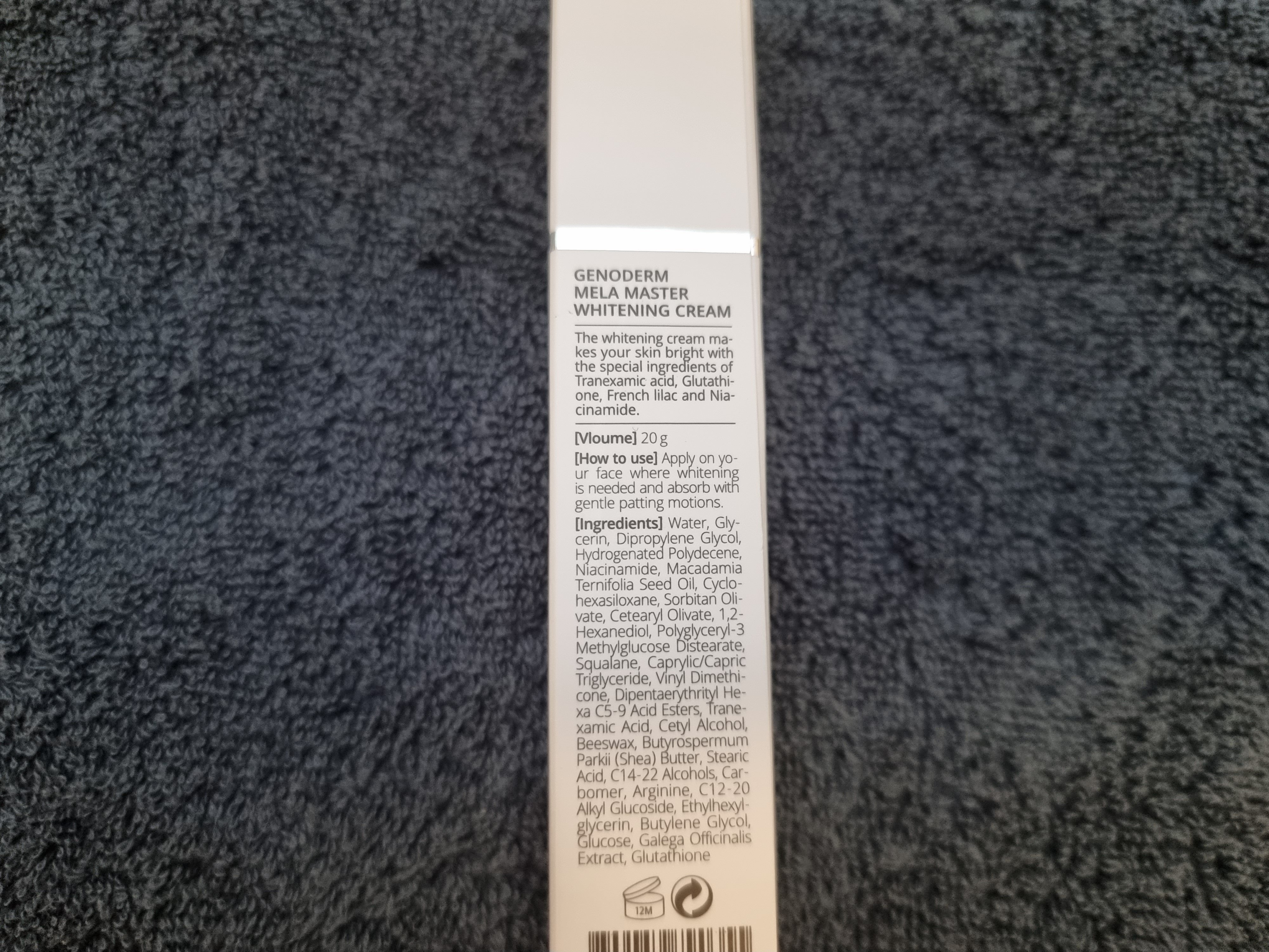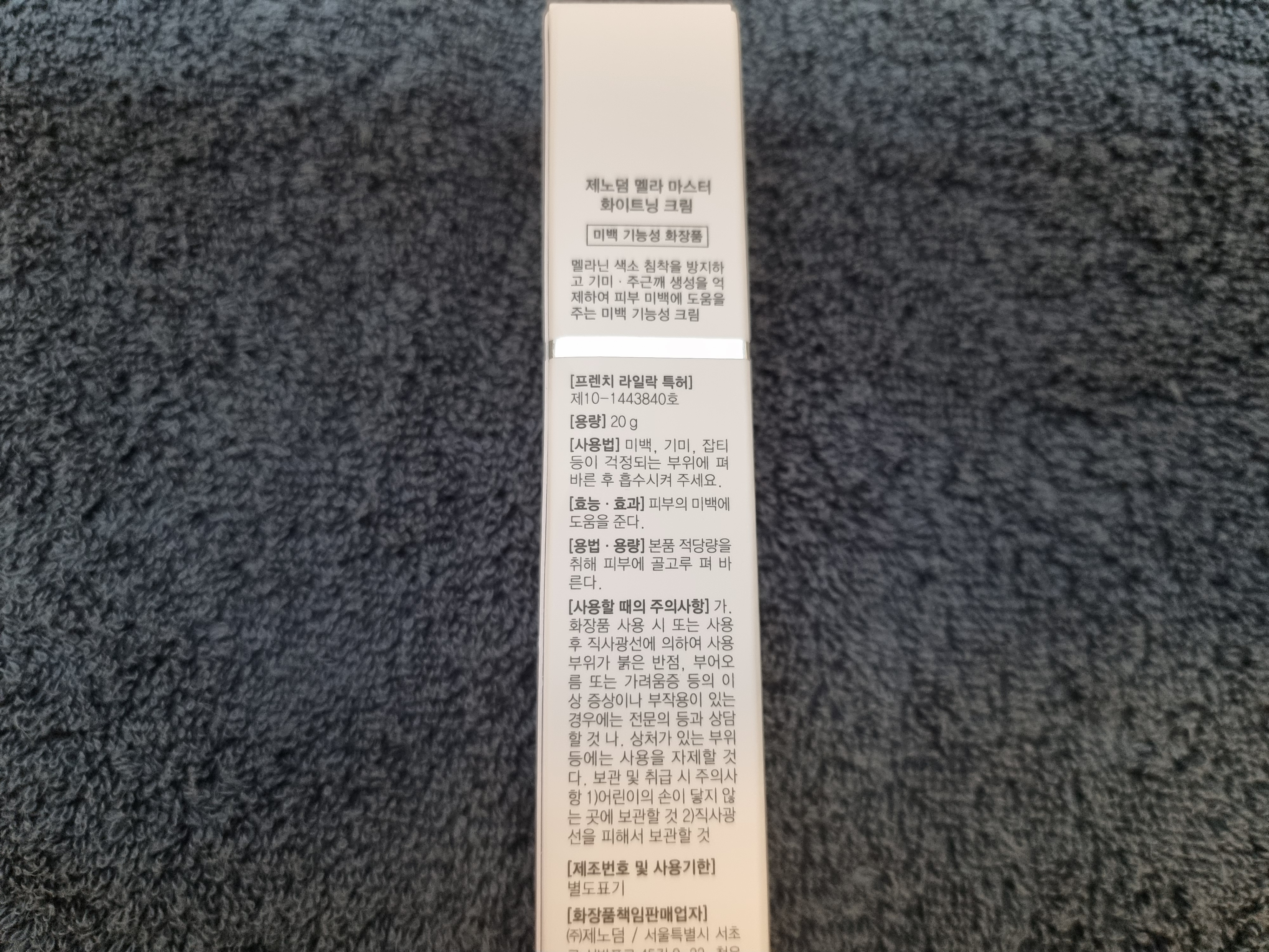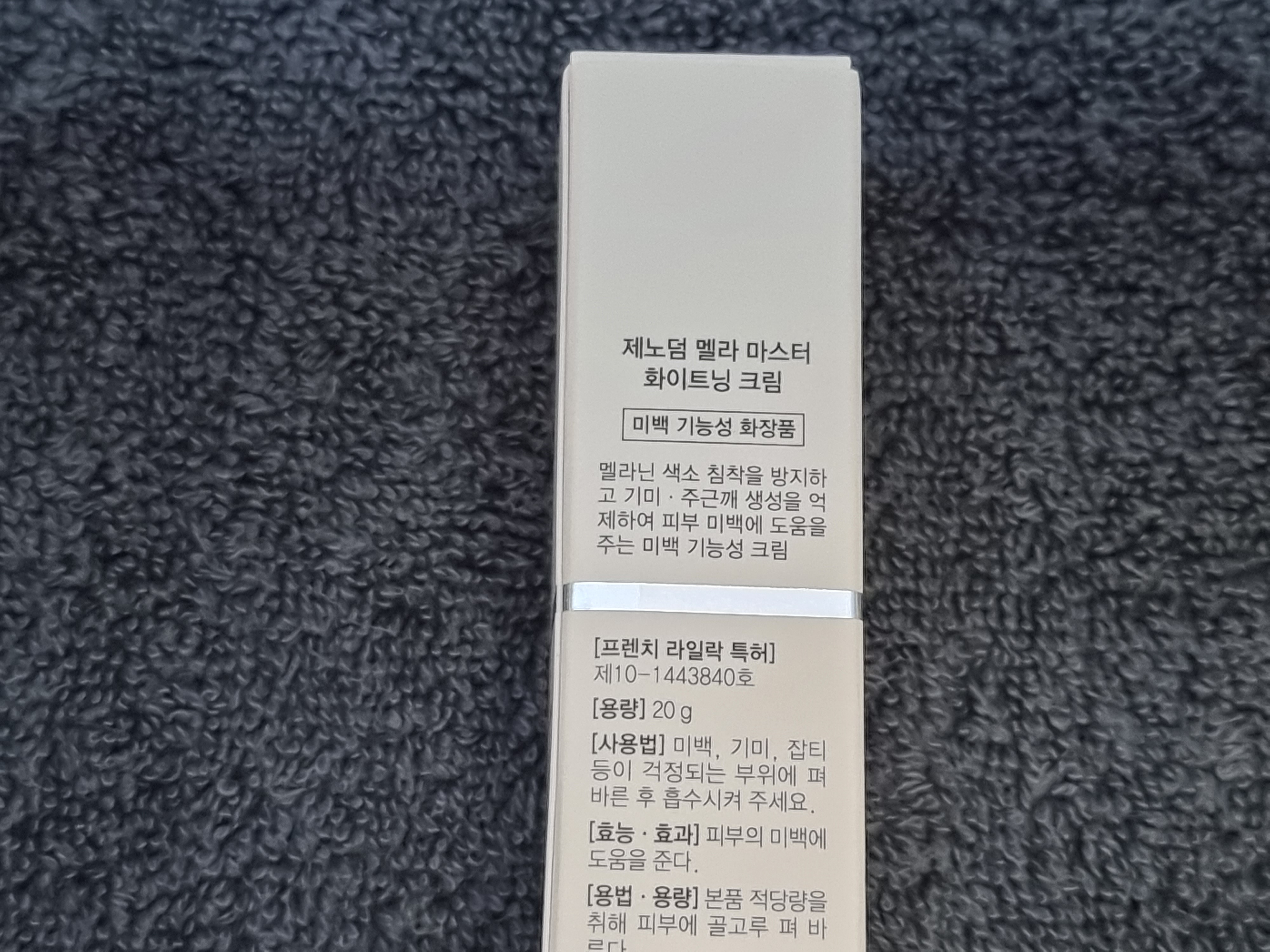 제가 받은 제품은 이 제품입니다. 이름이 제노덤 멜라 마스터 화이트닝 크림 이고요. 굉장히 얇고 작은 사이즈입니다. 20g이더라고요.