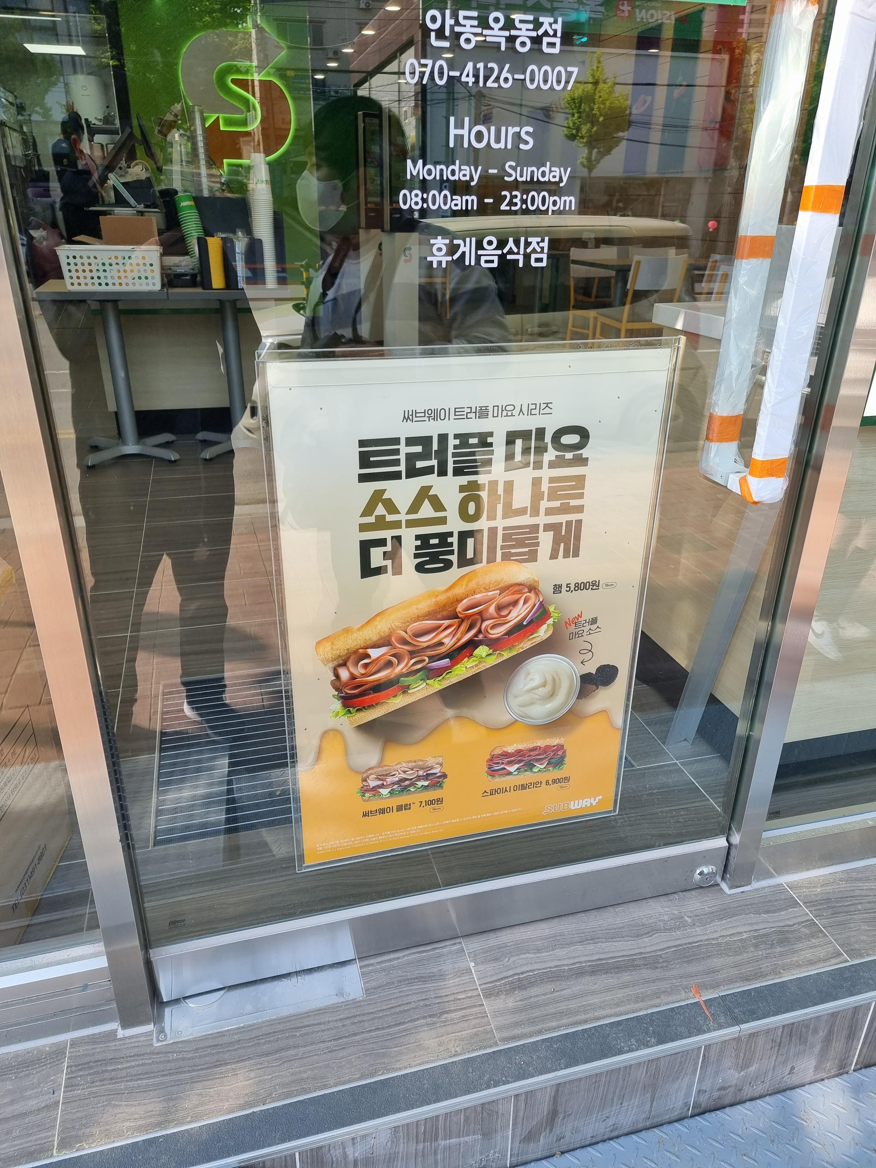 오픈런으로 1시간 정도 길에서 대기탔는데, 다른 지역의 서브웨이에서는 프리오프닝일때 번호표를 배부했다고 하는데 안동 옥동점은 번호표를 나눠주는건 없었고 그냥 줄서서 기다리는 것만 해주었습니다.