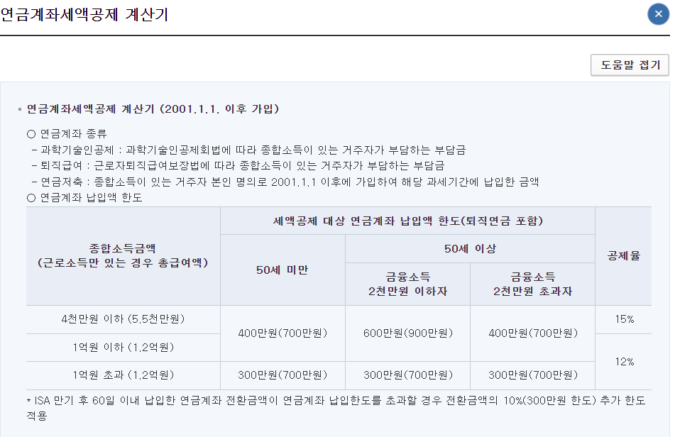 먼저 연금계좌 세액공제 계산기의 내용부터 살펴보겠습니다.