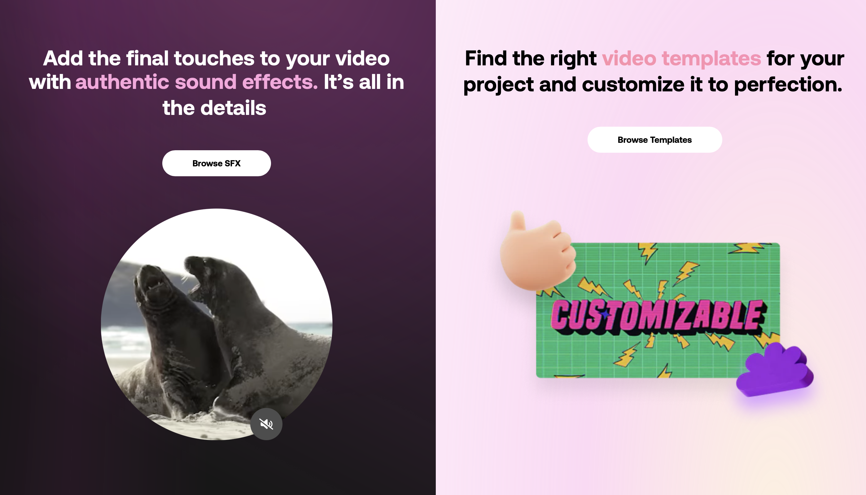 - 음악과 효과음을 위해 월 $9.99부터 시작하는 저렴한 서비스 플랜(연간 플랜도 있음)