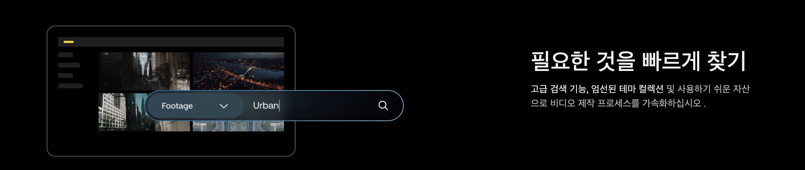 검색을 통해서 원하는 디지털 자산을 쉽게 찾을 수 있는데요. 이 부분은 음악을 찾을때와 효과음을 찾을때에도 유용하지만 아트그리드에서 필요한 동영상 소스를 찾을 때 굉장히 유용한 기법입니다.
