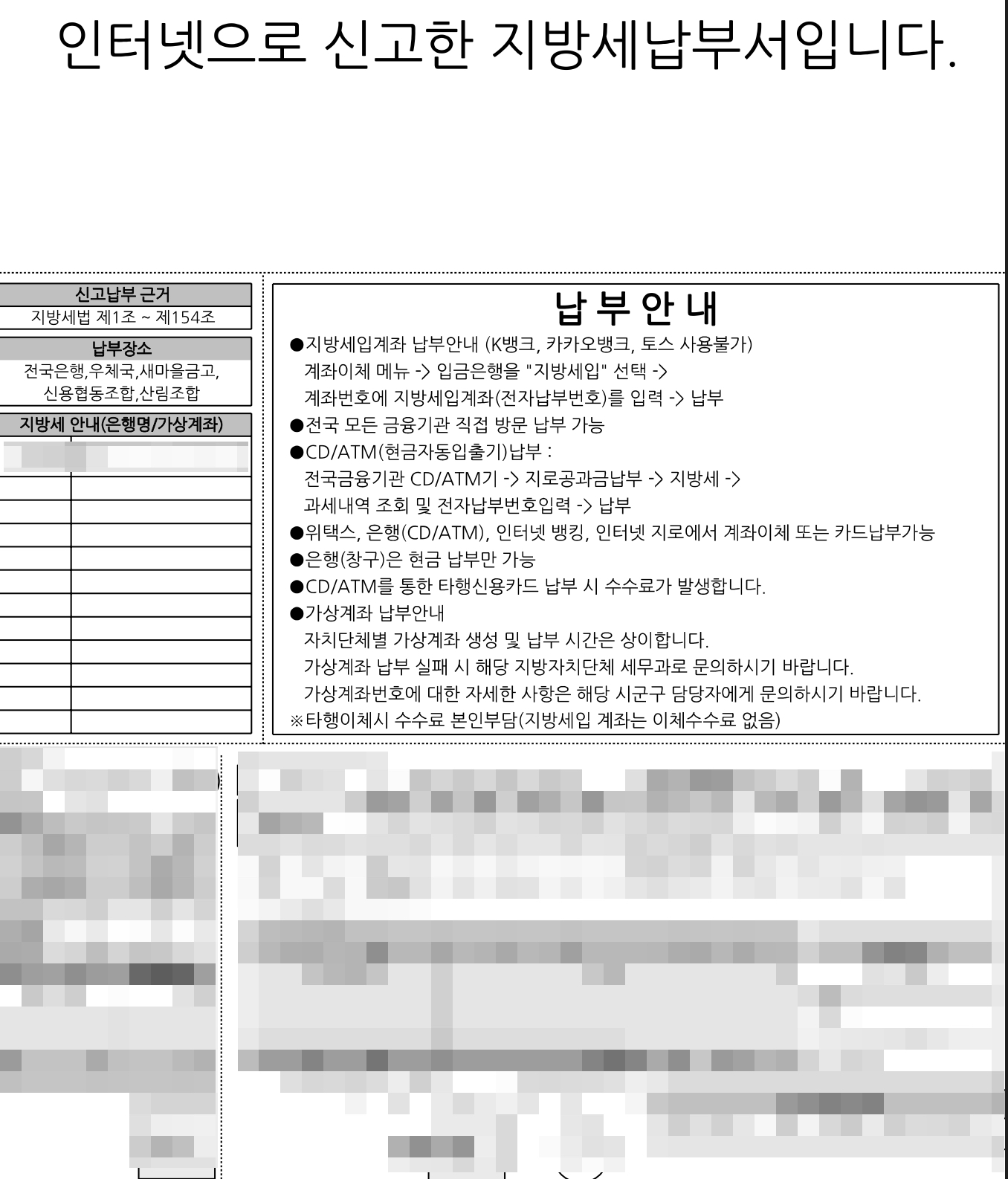 지방세의 경우에는 위텍스 앱으로 납부해도되며 계좌이체를 해도되는데요.