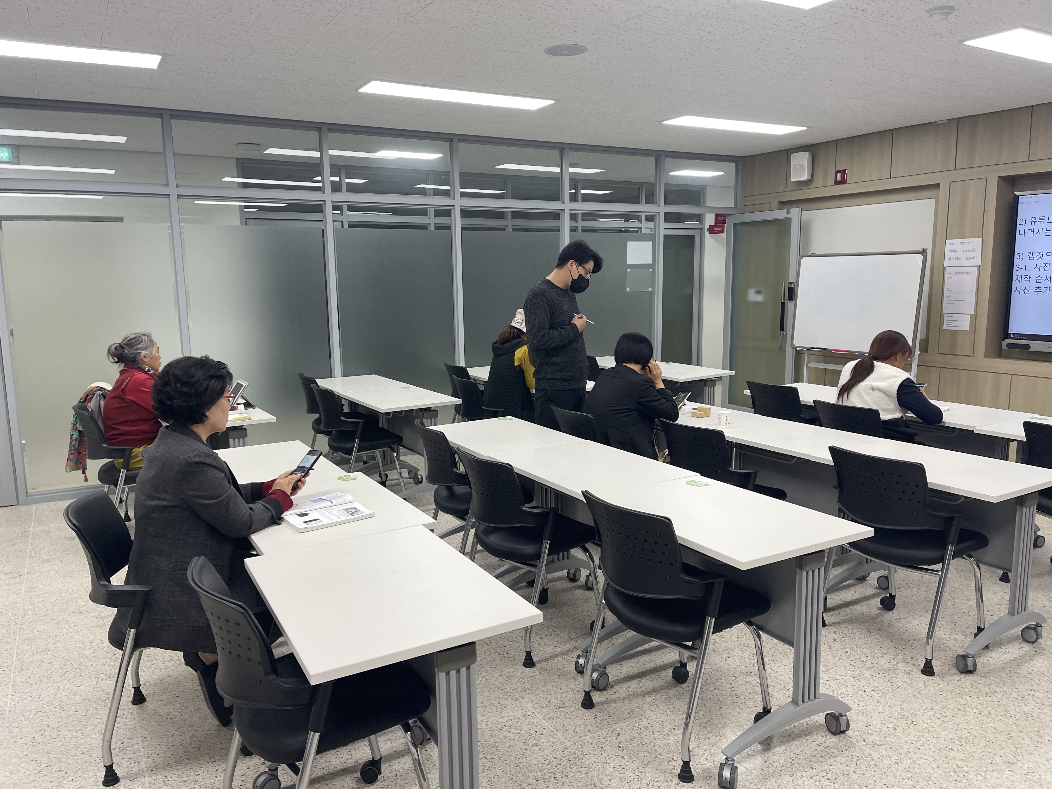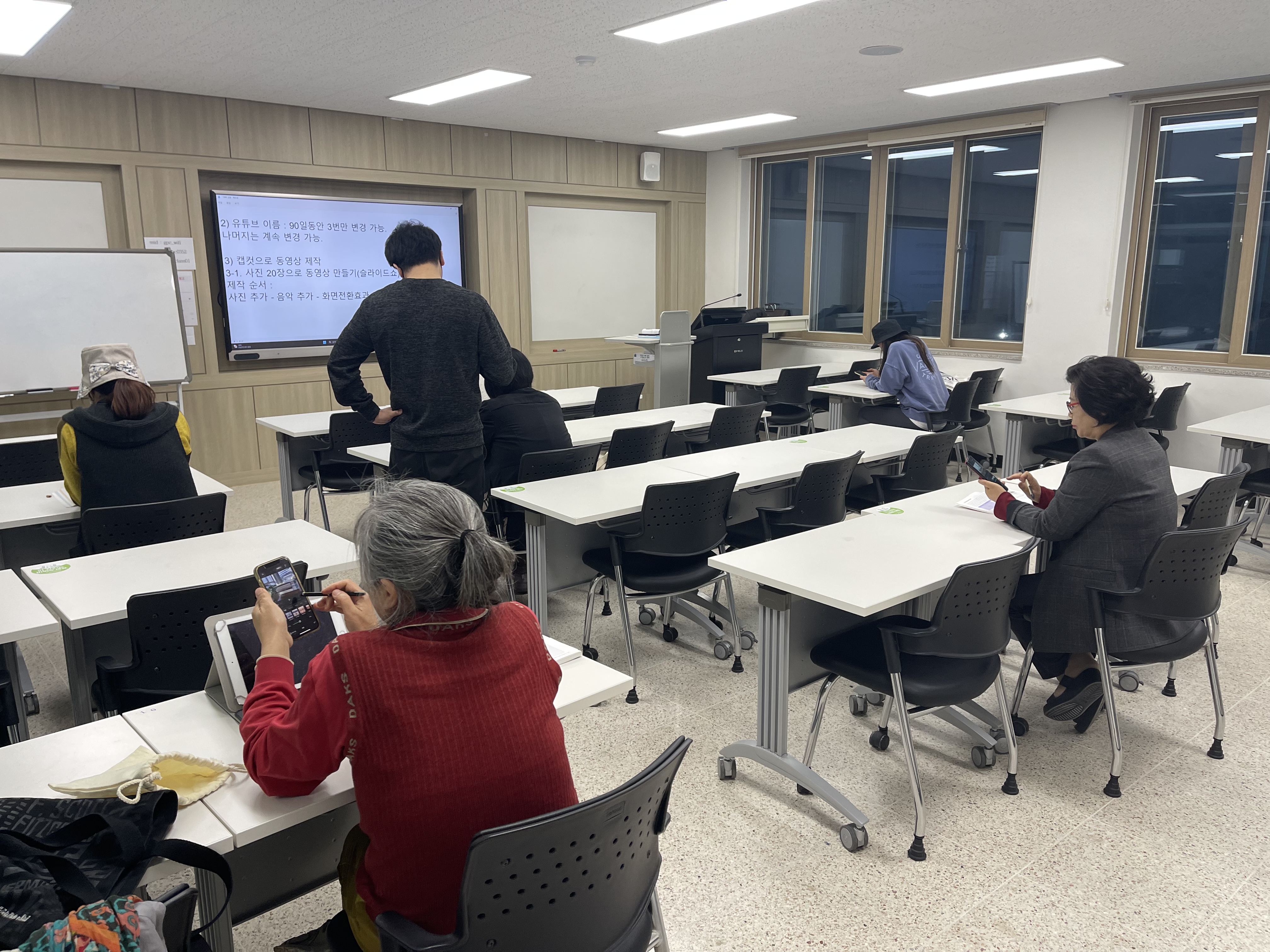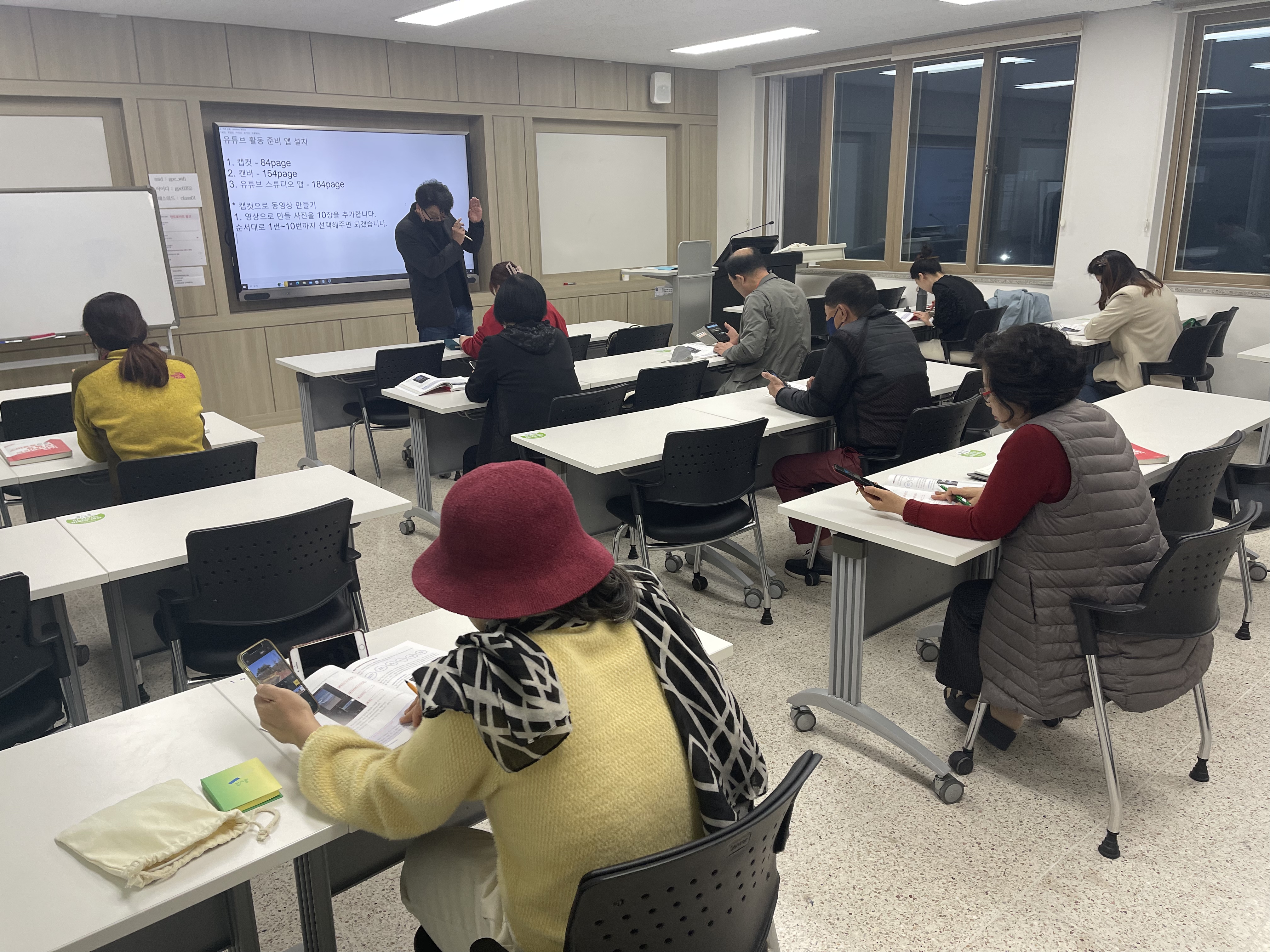 교재로는 스마트폰으로 유튜브 크리에이터되기 도서를 활용하는데 제가 출간하고 예전에 베스트셀러가 되었던 책입니다. 지금은 개정판으로 업그레이드하여 개정판을 중심으로 수업 진행하였습니다.