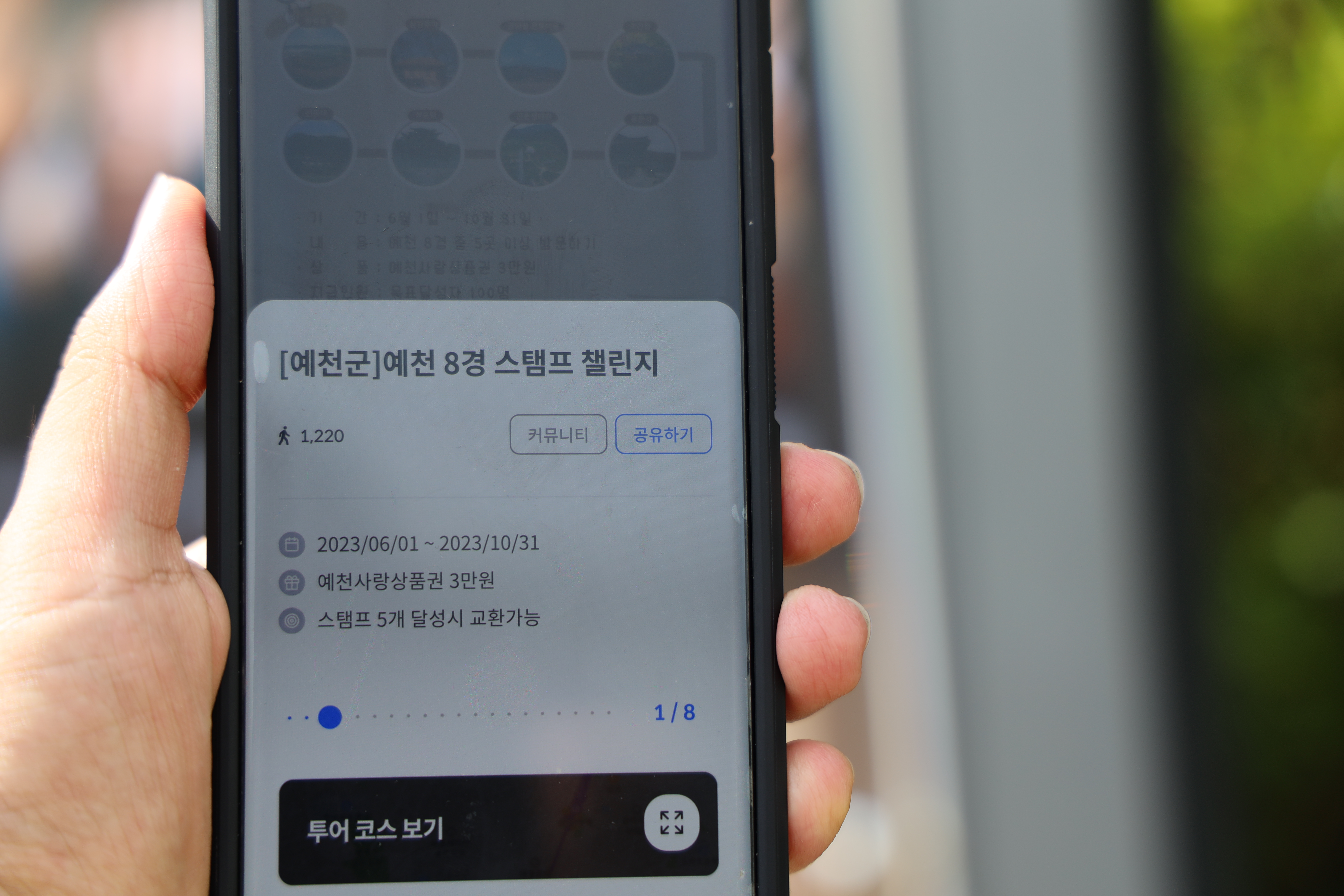 예천군에서 현재 뚜벅이 챌린지를 진행 중입니다. 뚜벅이 챌린지란, 예천군의 유명 관광 명소인 예천 8경을 여행하면서 스마트폰 워크온 앱을 통해 스탬프를 적립하고 적립된 스탬프로 챌린지에 응모하여 선정이 되면 예천사랑상품권을 혜택으로 받는 챌린지인데요. 예천에는 제가 즐겨 찾는 여행지들이 많아서 저도 현재 챌린지에 참가 중입니다. 챌린지는 2023년 10월 31일까지 진행되니 예천을 여행하실 때 챌린지 참가를 해보시면 좋을 것 같아요.