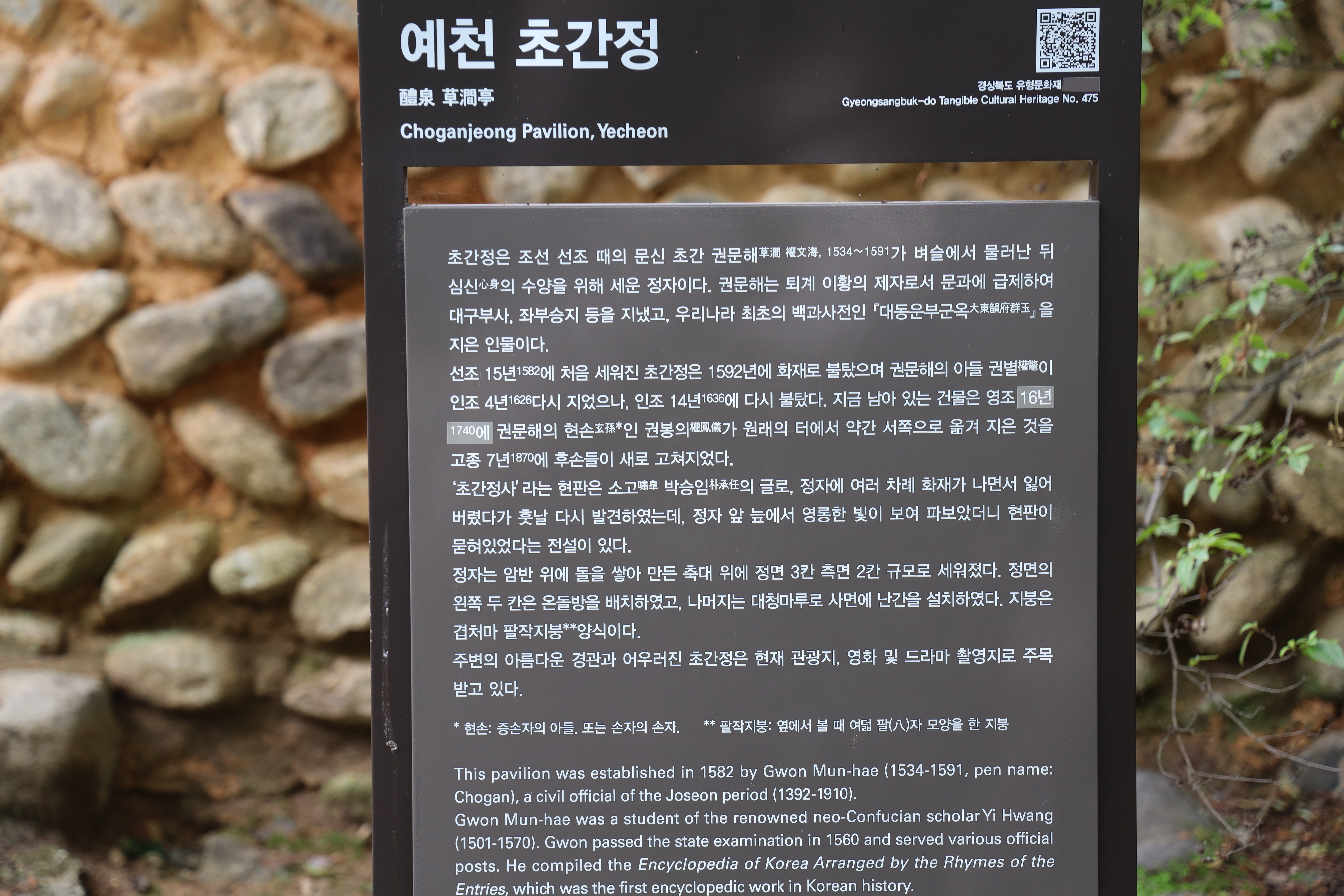 뚜벅이 챌린지로 예천 8경 여행을 해봤습니다. 첫번째 코스는 초간정이었고요. 여름에 방문하여 초록초록한 초간정의 풍경으로 지친 몸과 마음에게 여유를 가져보는 시간이었습니다.