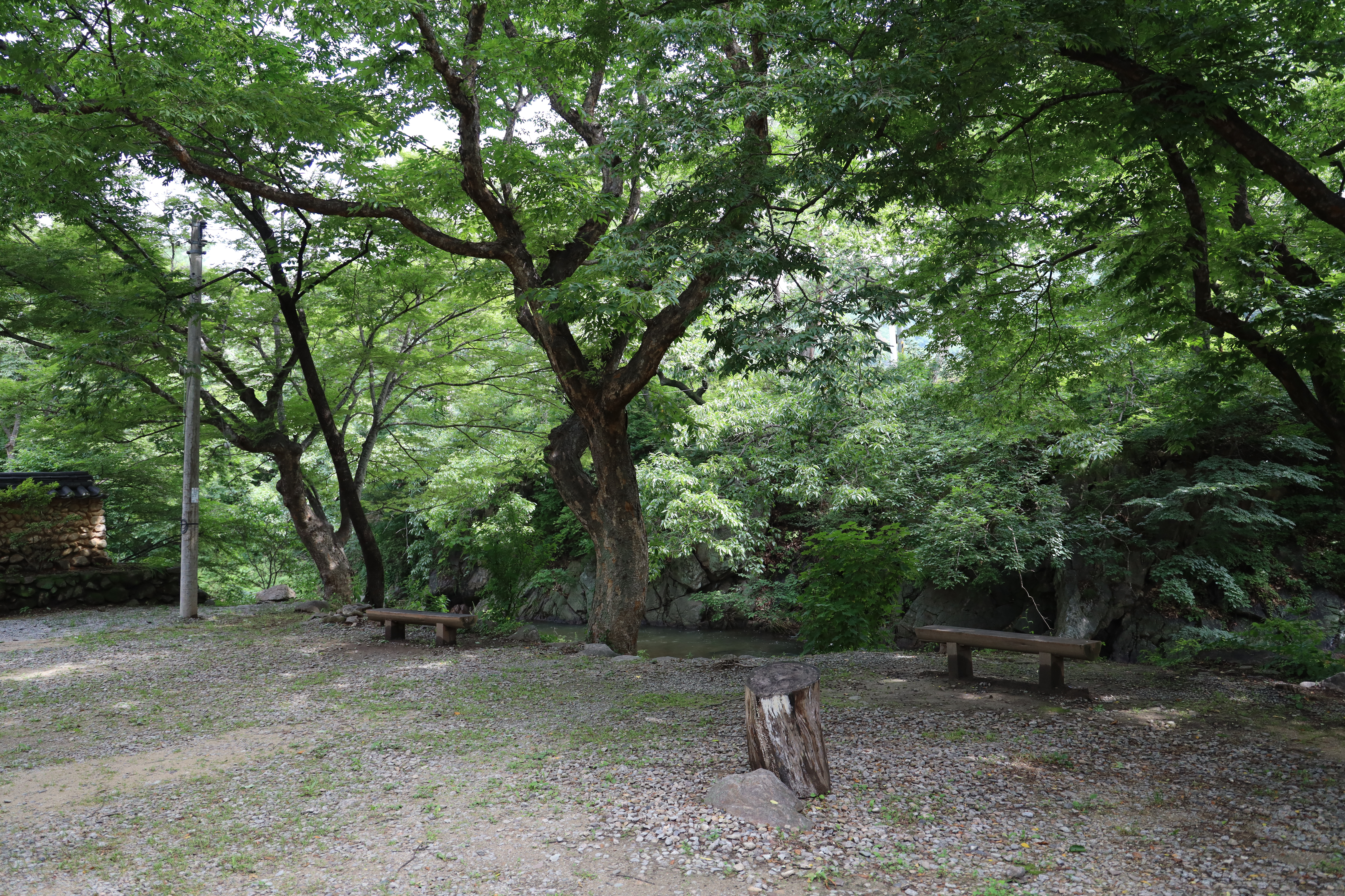 초간정 입구쪽에 쉴 수 있는 공간과 벤치가 있습니다. 여기에서 계곡을 감상하면서 힐링하는 시간을 가져보았습니다.