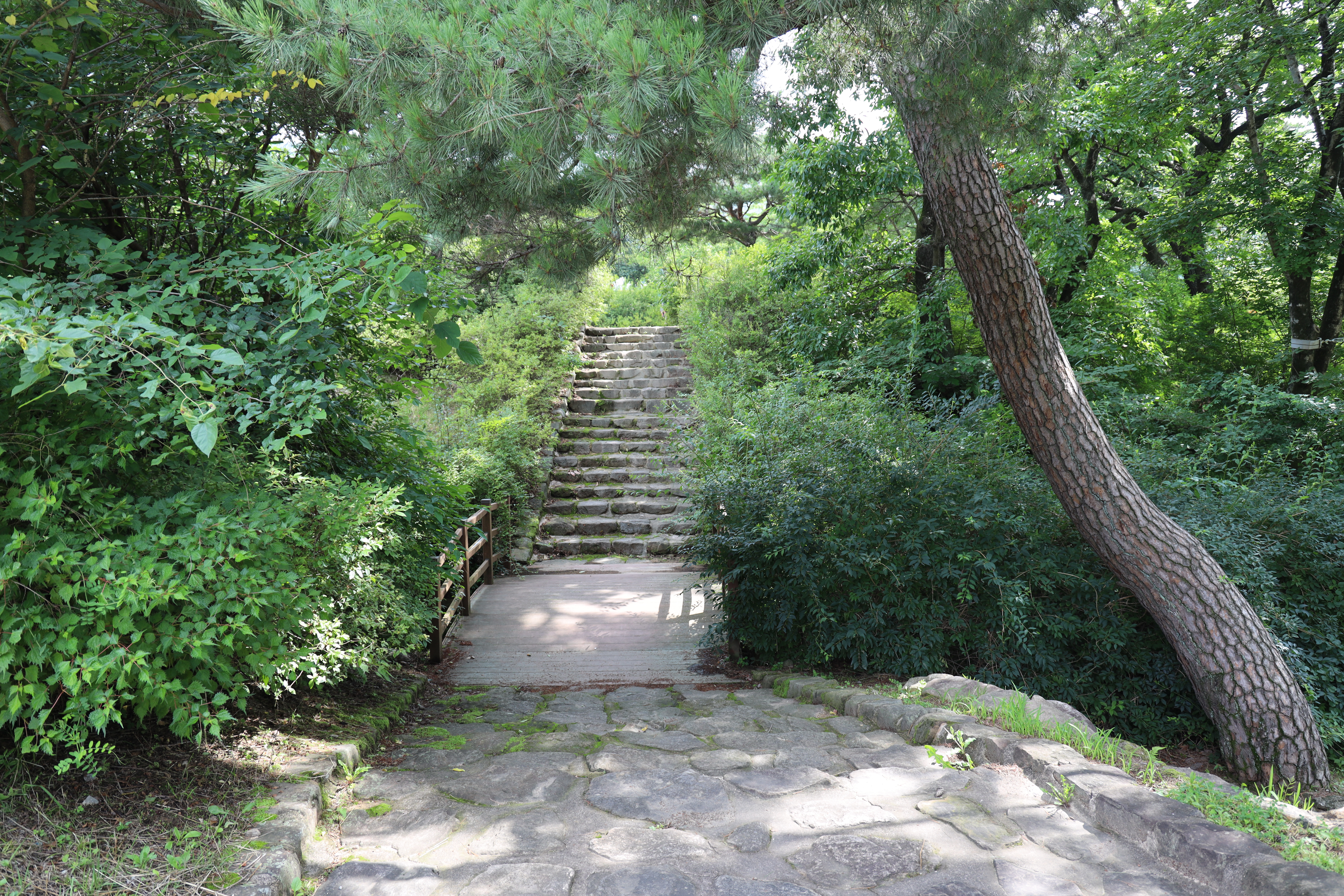 초간정으로 향하는 길입니다. 제가 좋아하는 길 중 하나로 가을에 방문하면 단풍으로 물들어서 더욱 아름다운 공간인데요. 무더운 여름에 방문하더라도 시원한 계곡 소리가 반겨주는 곳이며 작은 계단은 스냅사진 찍기에도 좋은 초록초록한 풍경을 자랑합니다.