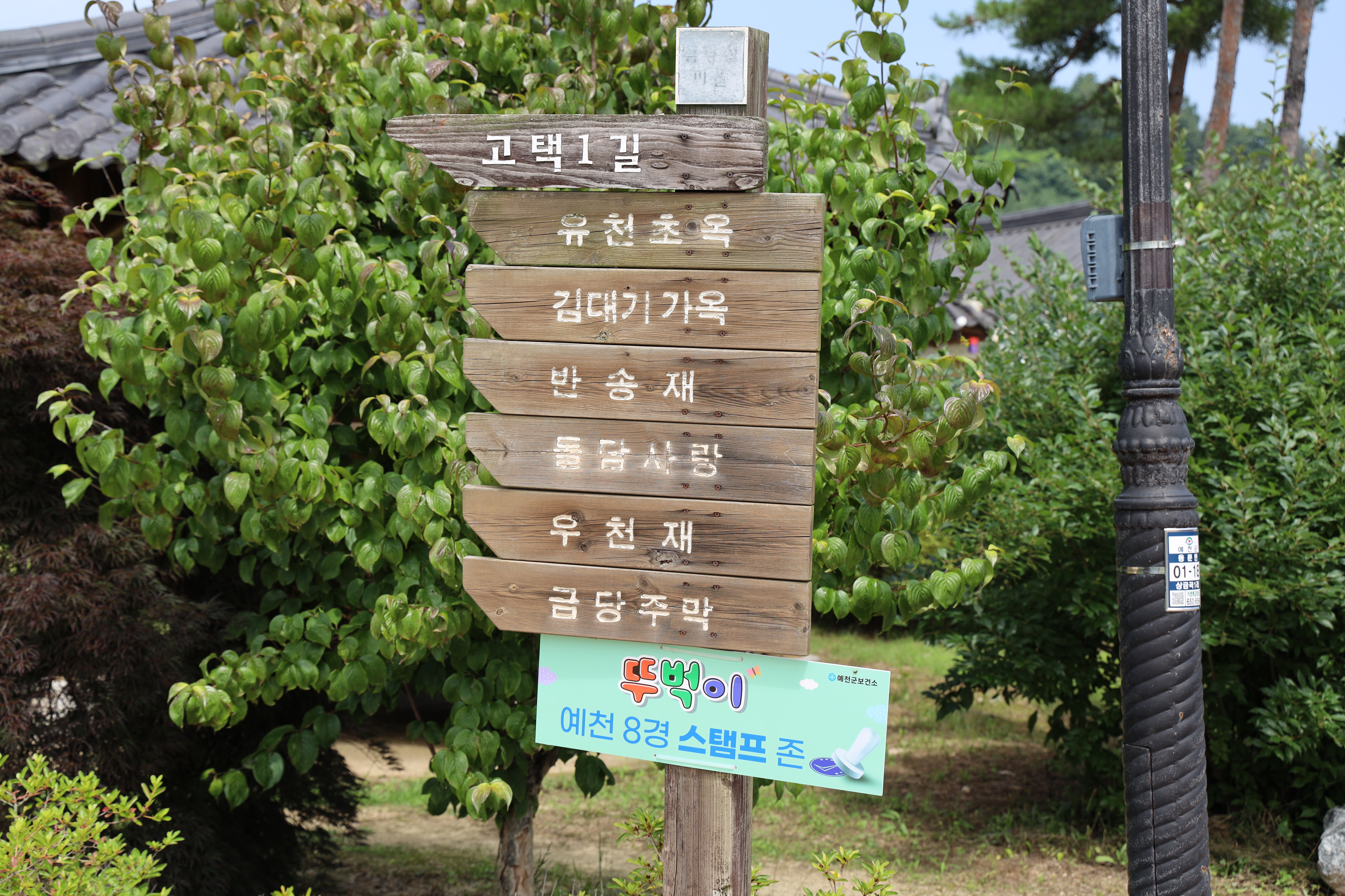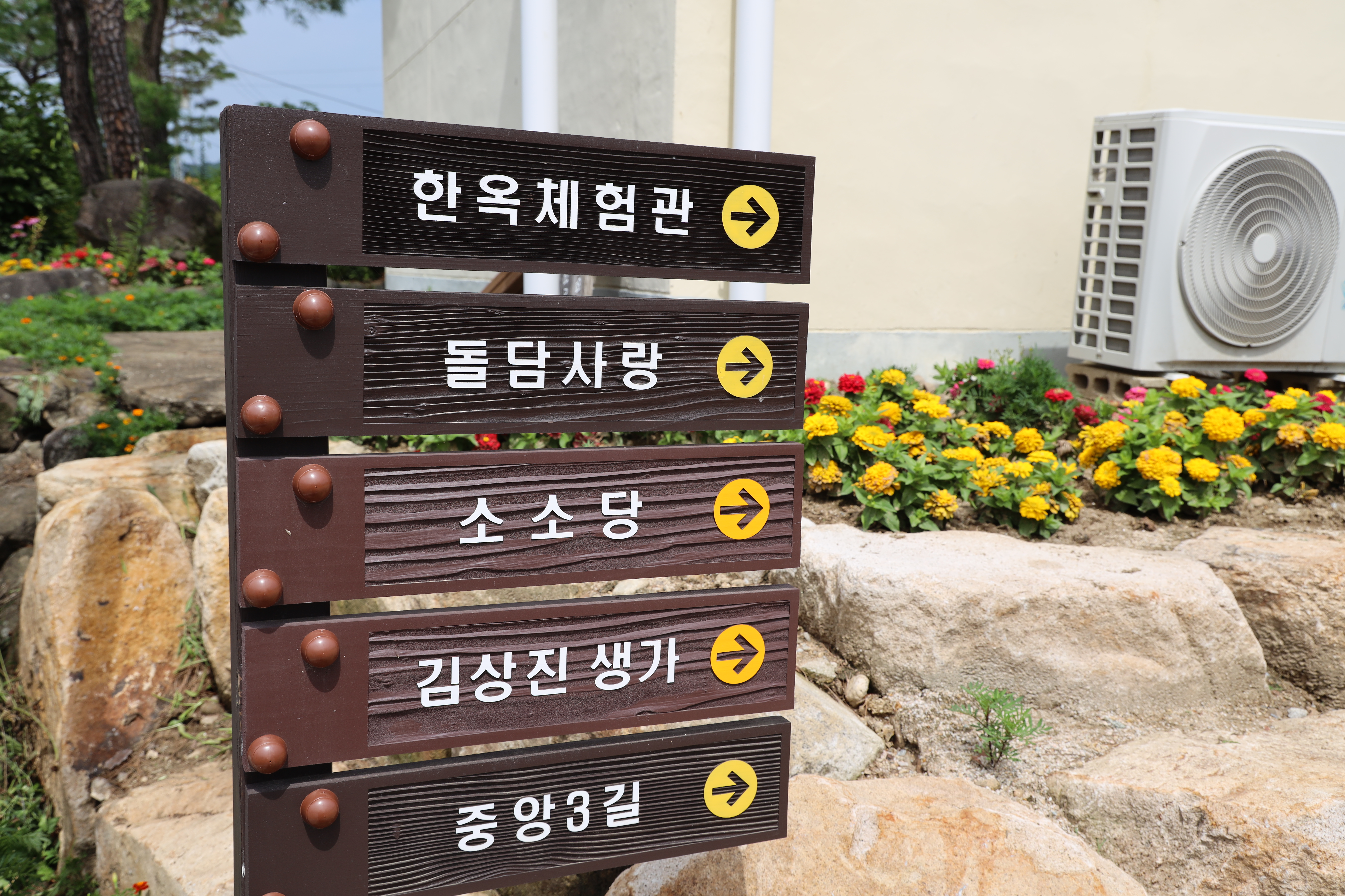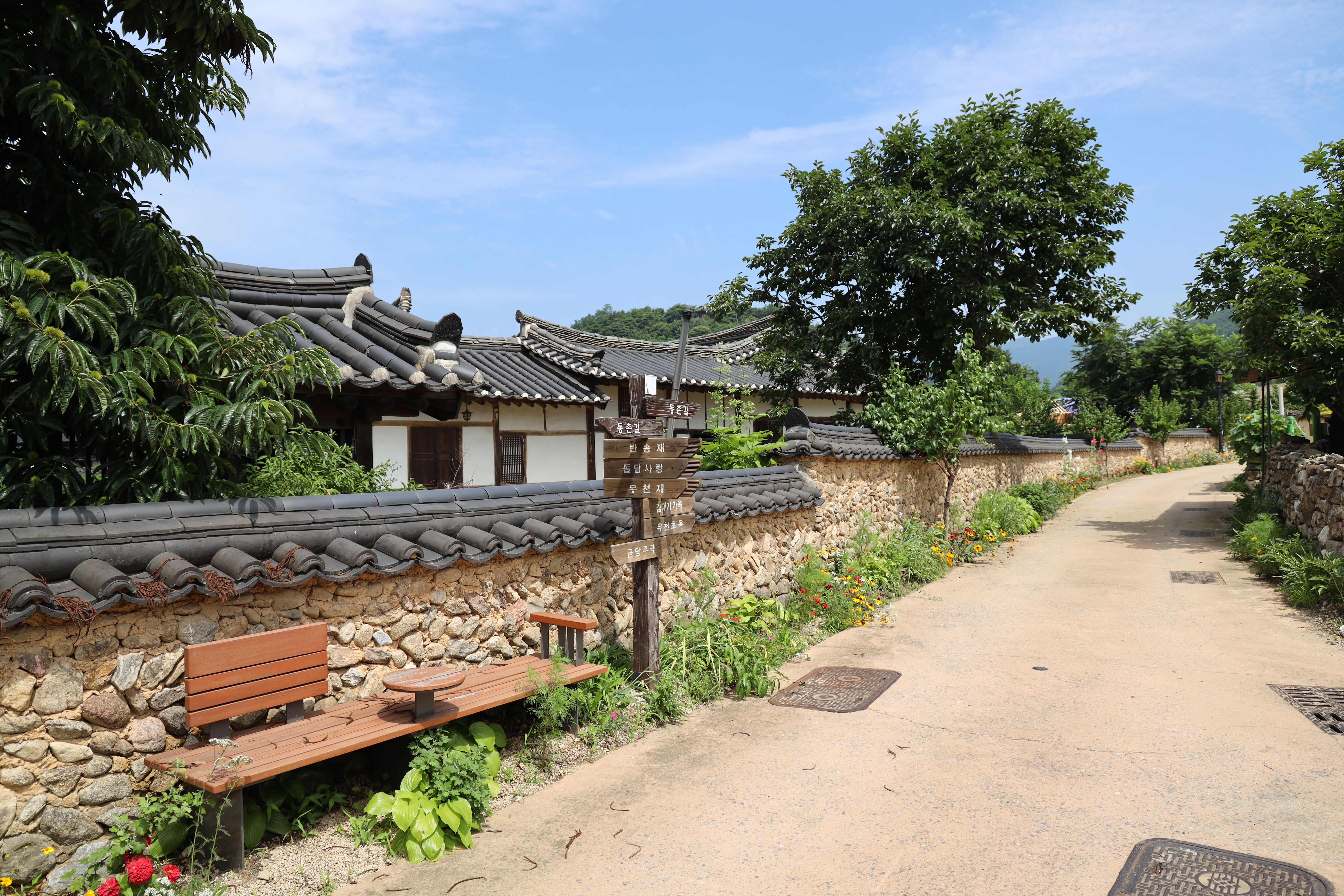 처음 주차장에 주차를 한 후 도보로 조금 이동을 하여야합니다. 금당실전통마을의 뚜벅이챌린지 스탬프 적립을 하는 곳은 한옥체험관 앞이더라고요. 그래서 평소 제가 자주 가던 길이 아닌 한옥체험관쪽으로 걸어가보았습니다. 가는 길에 금당실전통마을 길 양옆으로 예쁜 꽃들이 식재돼 있어서 즐거운 도보 여행... 말 그대로 뚜벅이 여행이었네요!