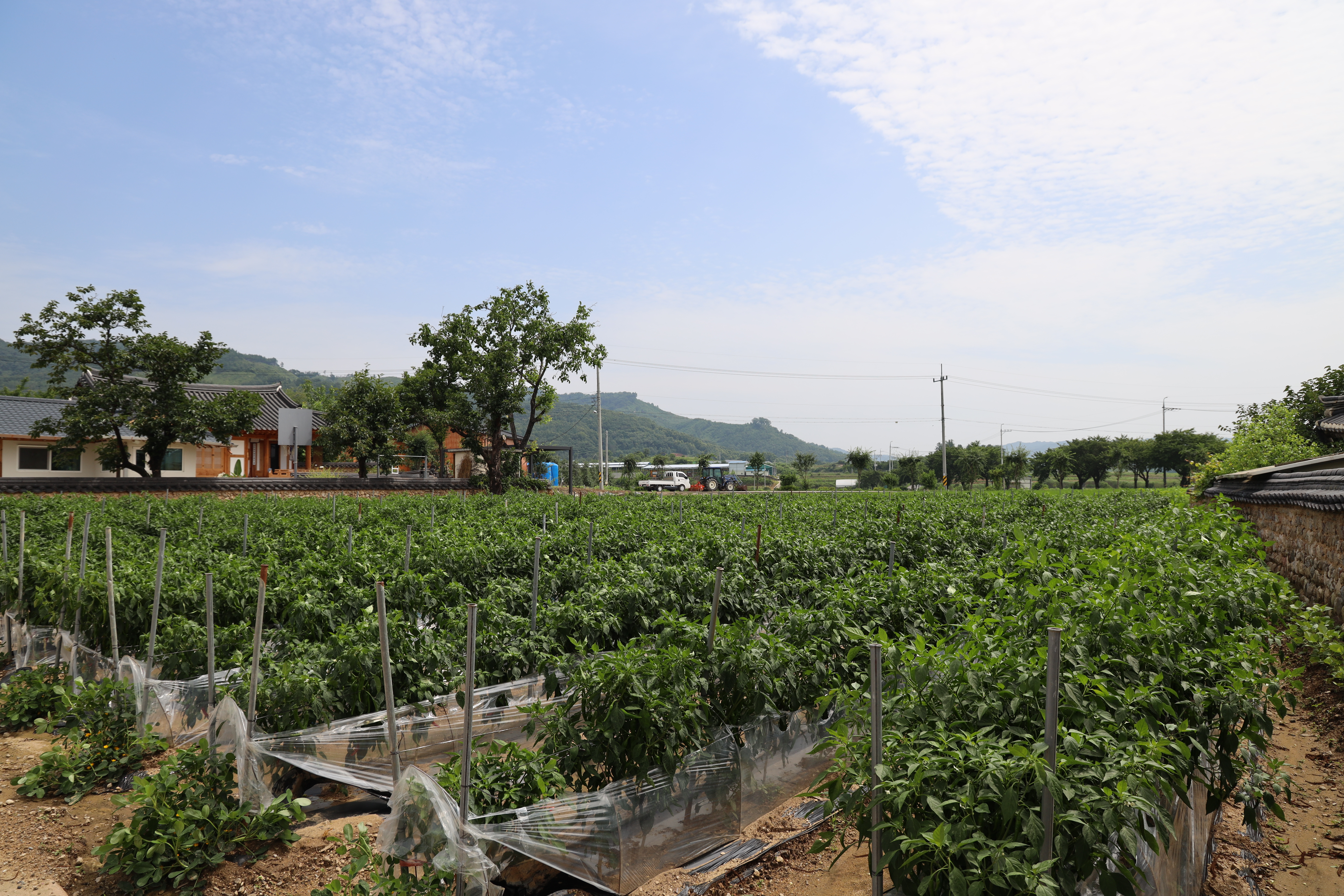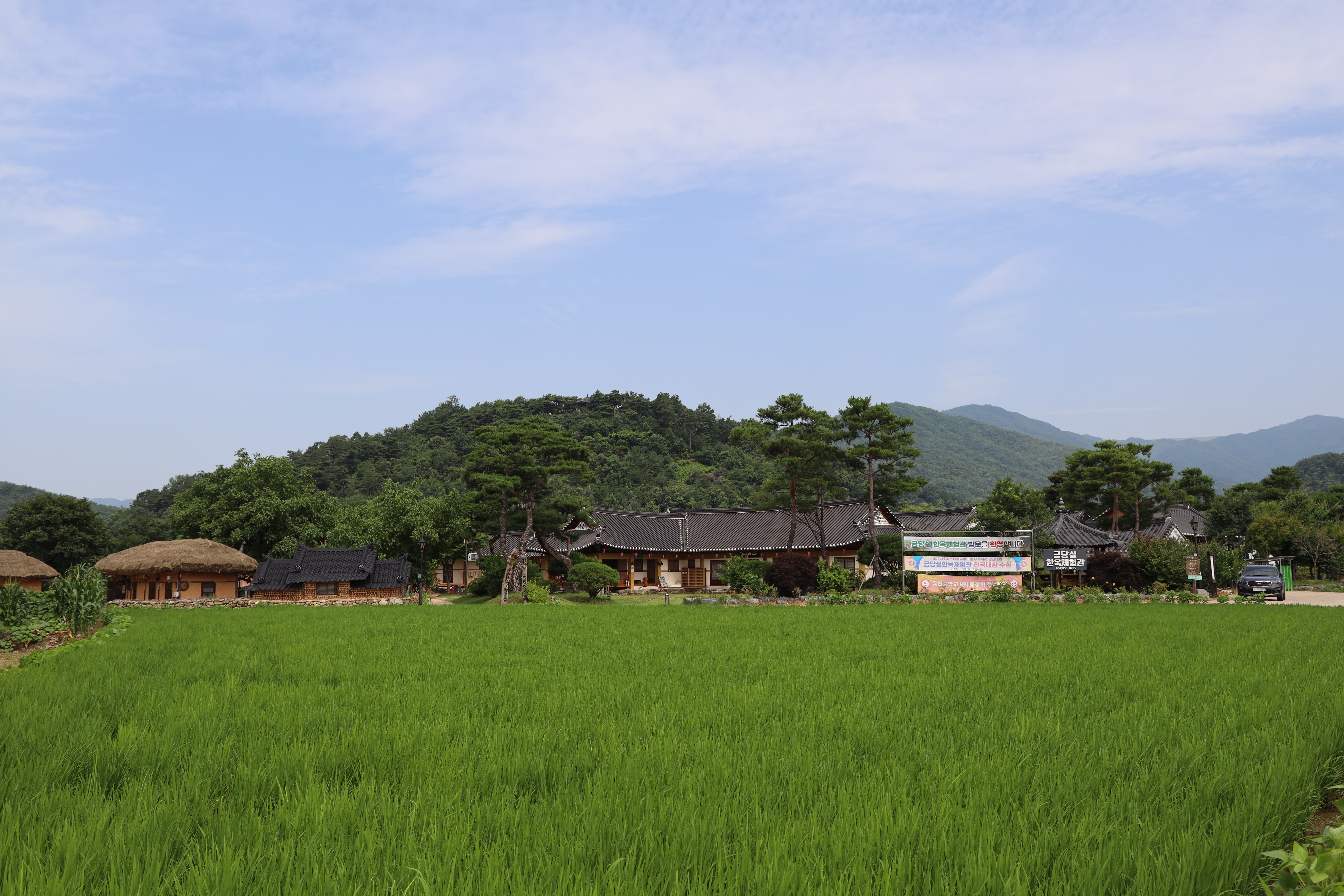 평야처럼 넓은 뷰와 산맥이 조화를 이루는 뷰를 금당실전통마을에서 만나보실 수 있습니다.