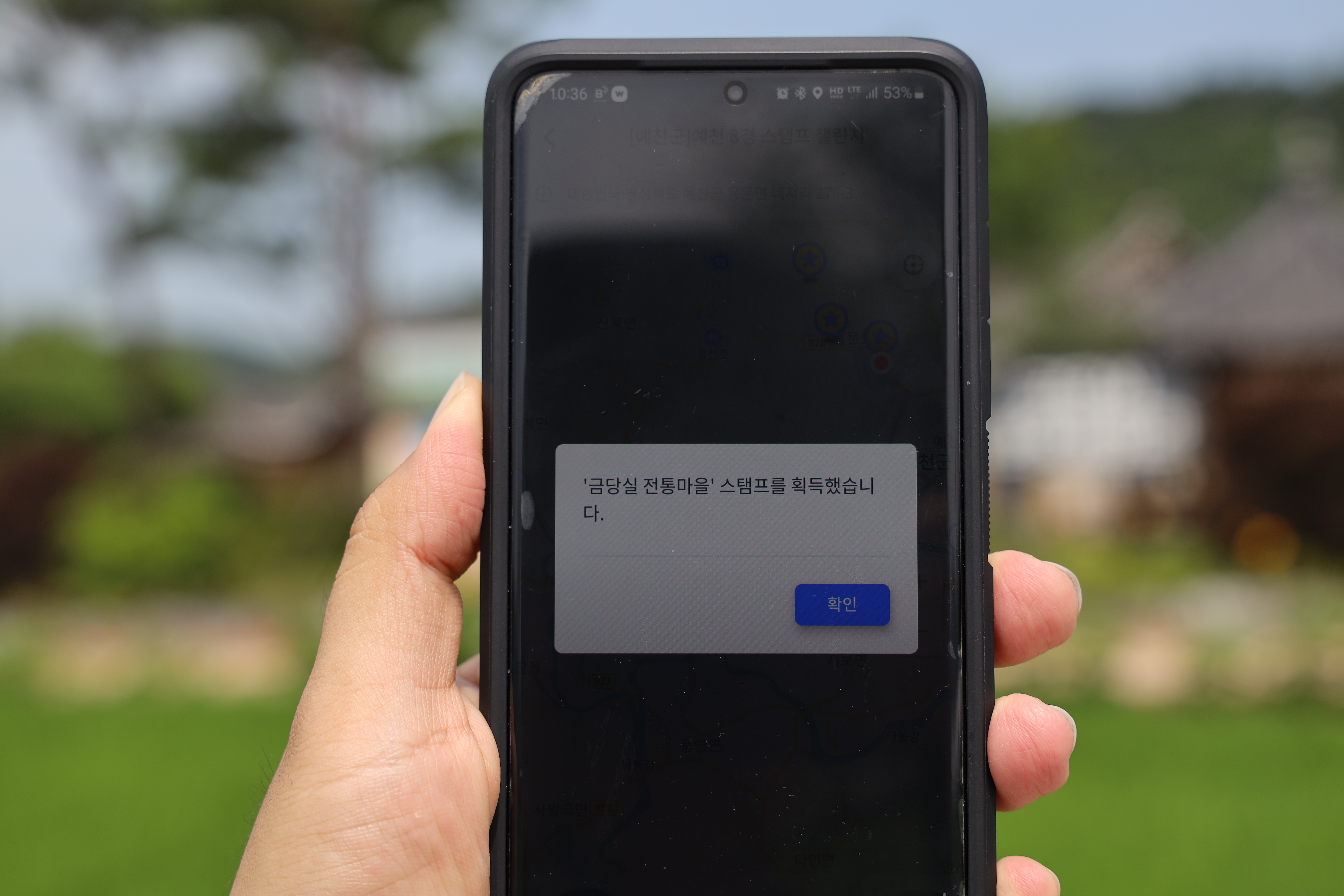 가까이 다가가니 금당실 전통마을 스탬프를 획득하였고 어느덧 3곳째 스탬프를 적립하게 되었습니다. 뚜벅이챌린지의 최소 스탬프가 5곳이라서 완료하려면 아직 2곳 이상을 더 방문해야합니다!