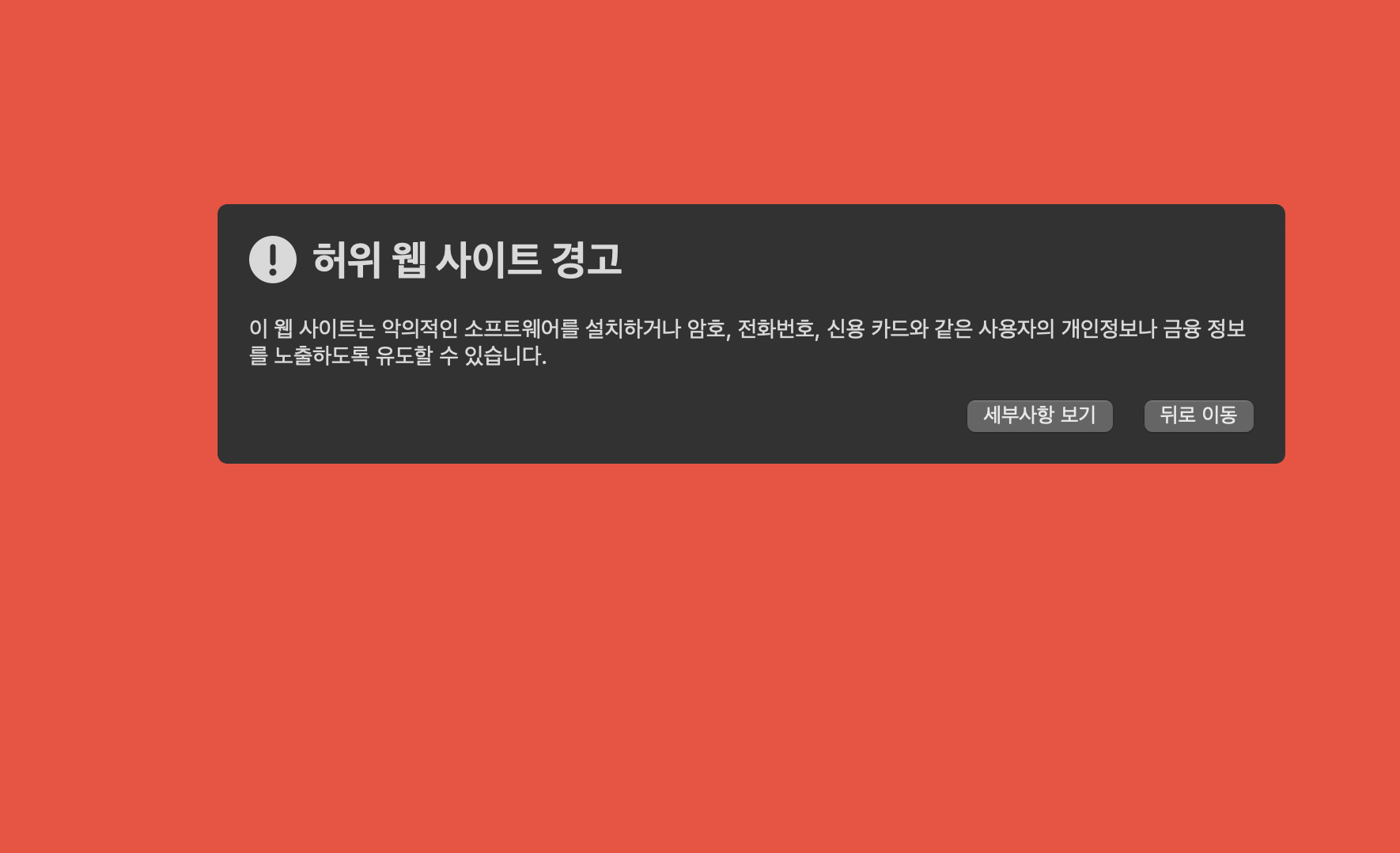 저는 맥북에 사파리 브라우저 이용 중인데요. 실제로 아래쪽에 '아니요(내가 아닙니다)'를 클릭해보면, 네이버 비밀번호 변경 사이트로 접속되는게 아니라 허위 웹사이트 경고창이 나오는 피싱 사이트로 접속이 됩니다. (이건 브라우저마다 다를 것 같아요)