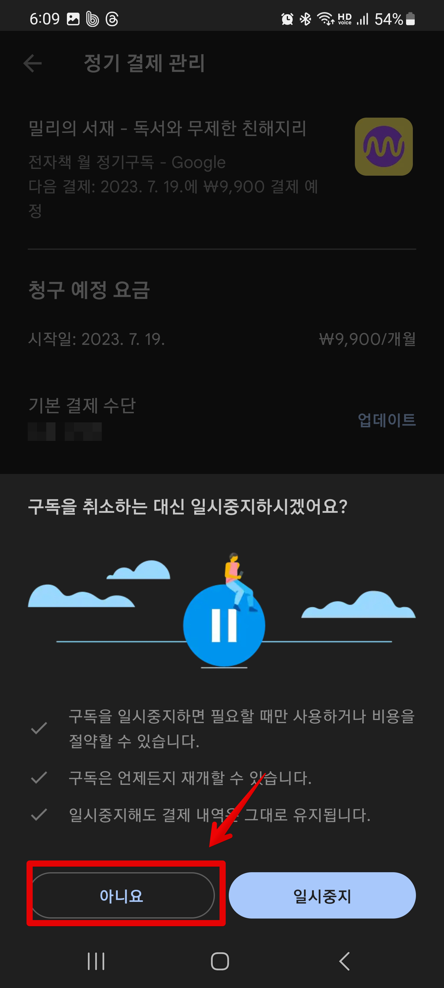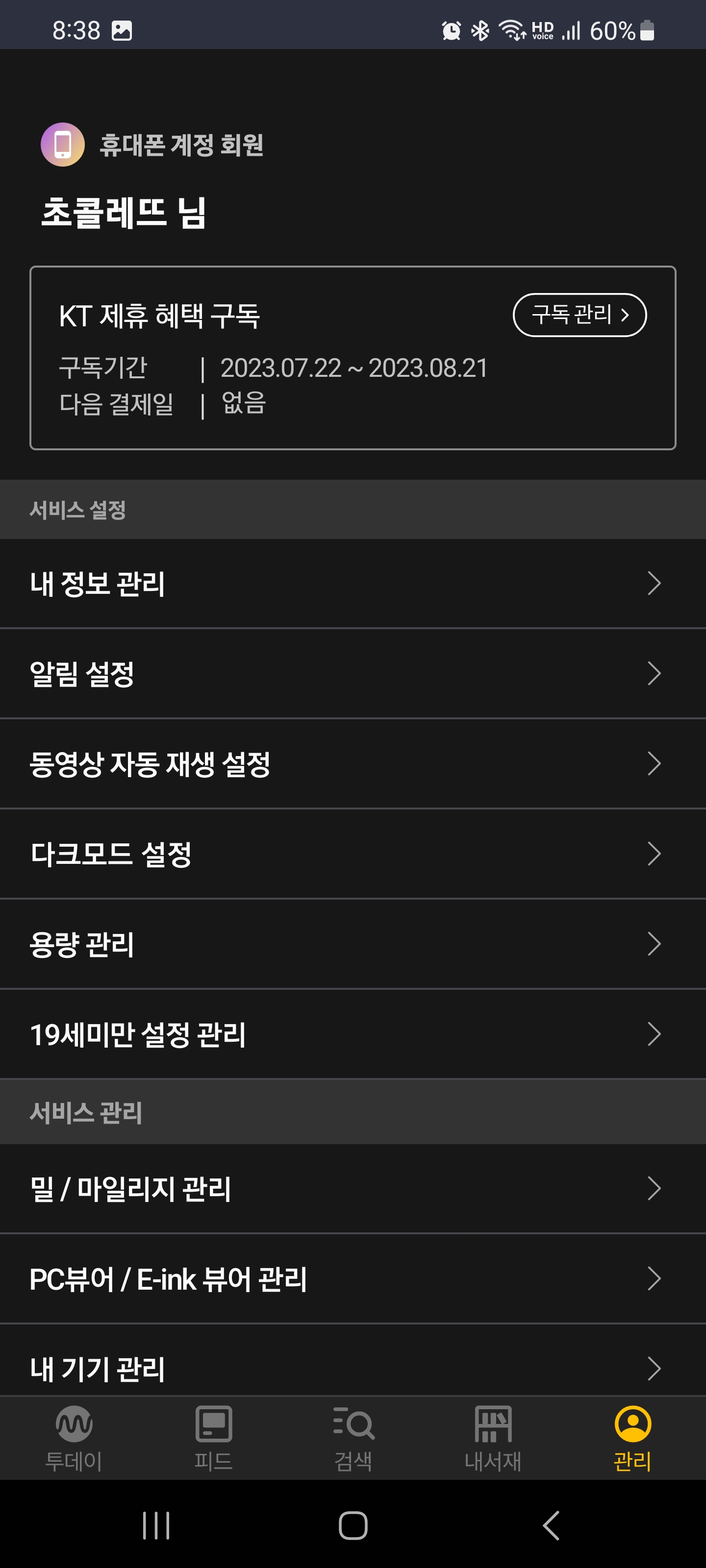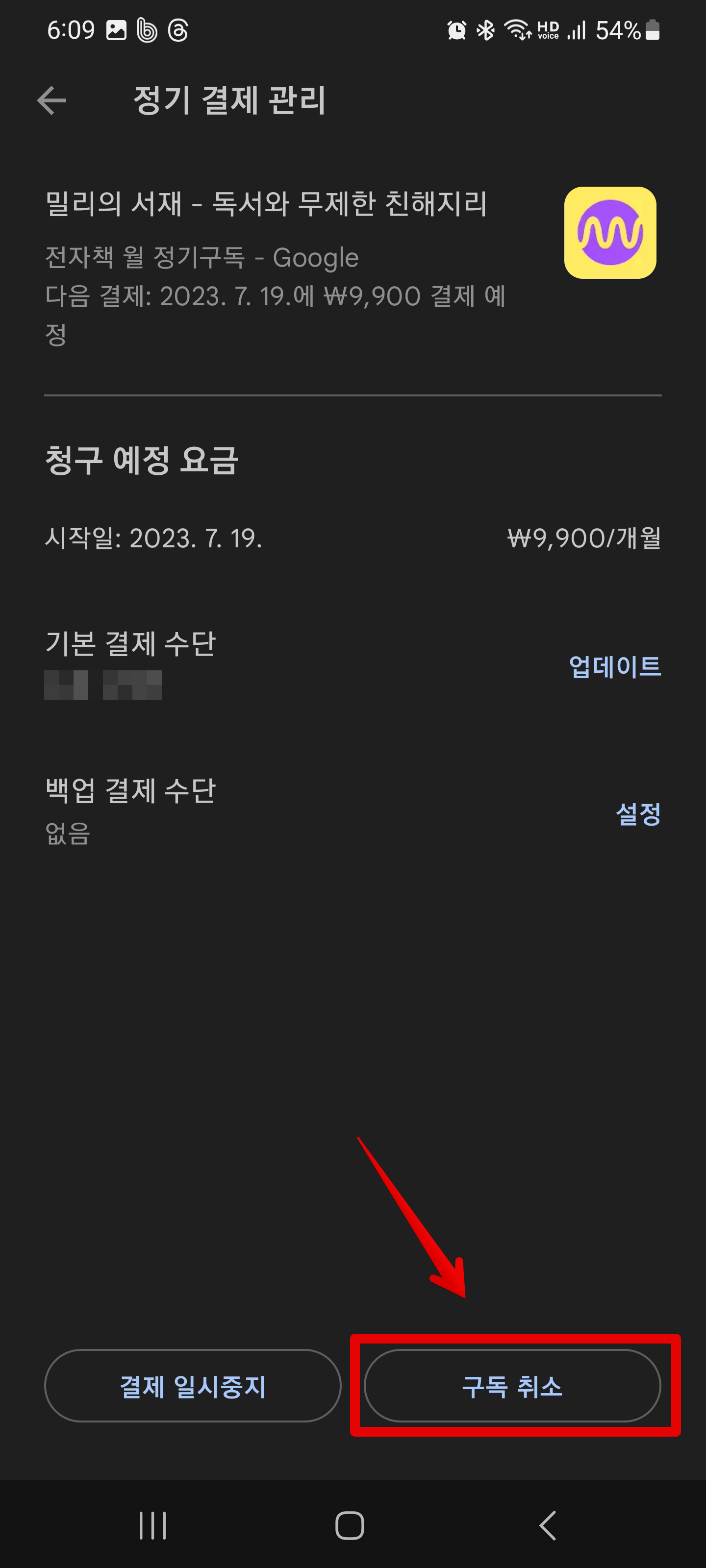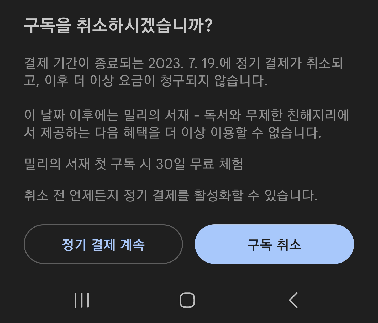 밀리의 서재 유료 구독 해지하기