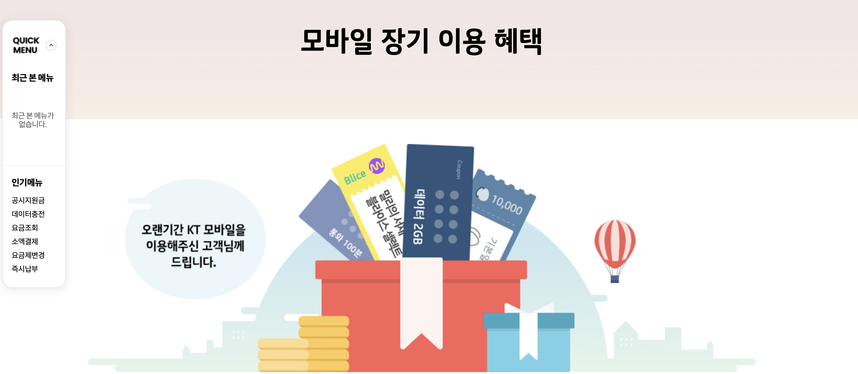 오랜기간 KT 모바일을 이용하게 되면 얻을 수 있는 혜택들이 있습니다.
