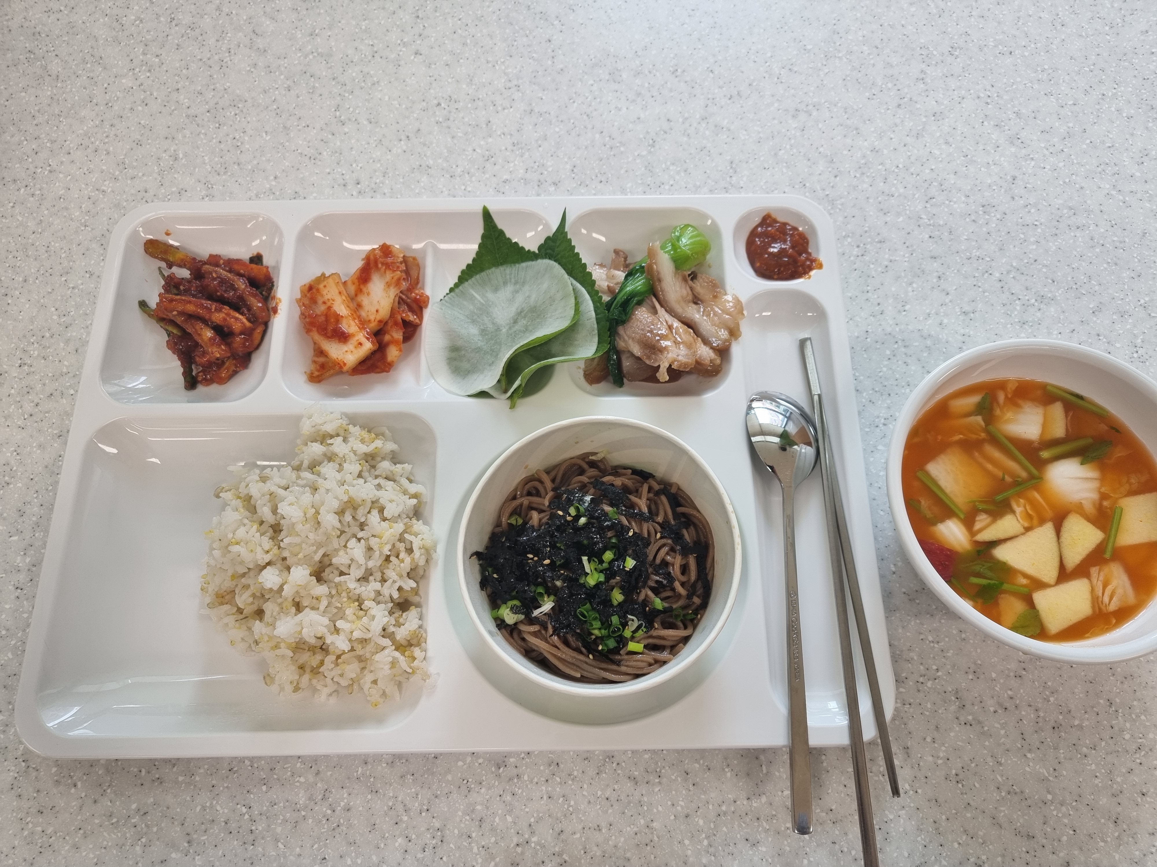 식당에서 점심 식사를 하였는데요. 이 날에는 마침 막국수가 나와서 식사가 굉장히 만족스러웠어요.