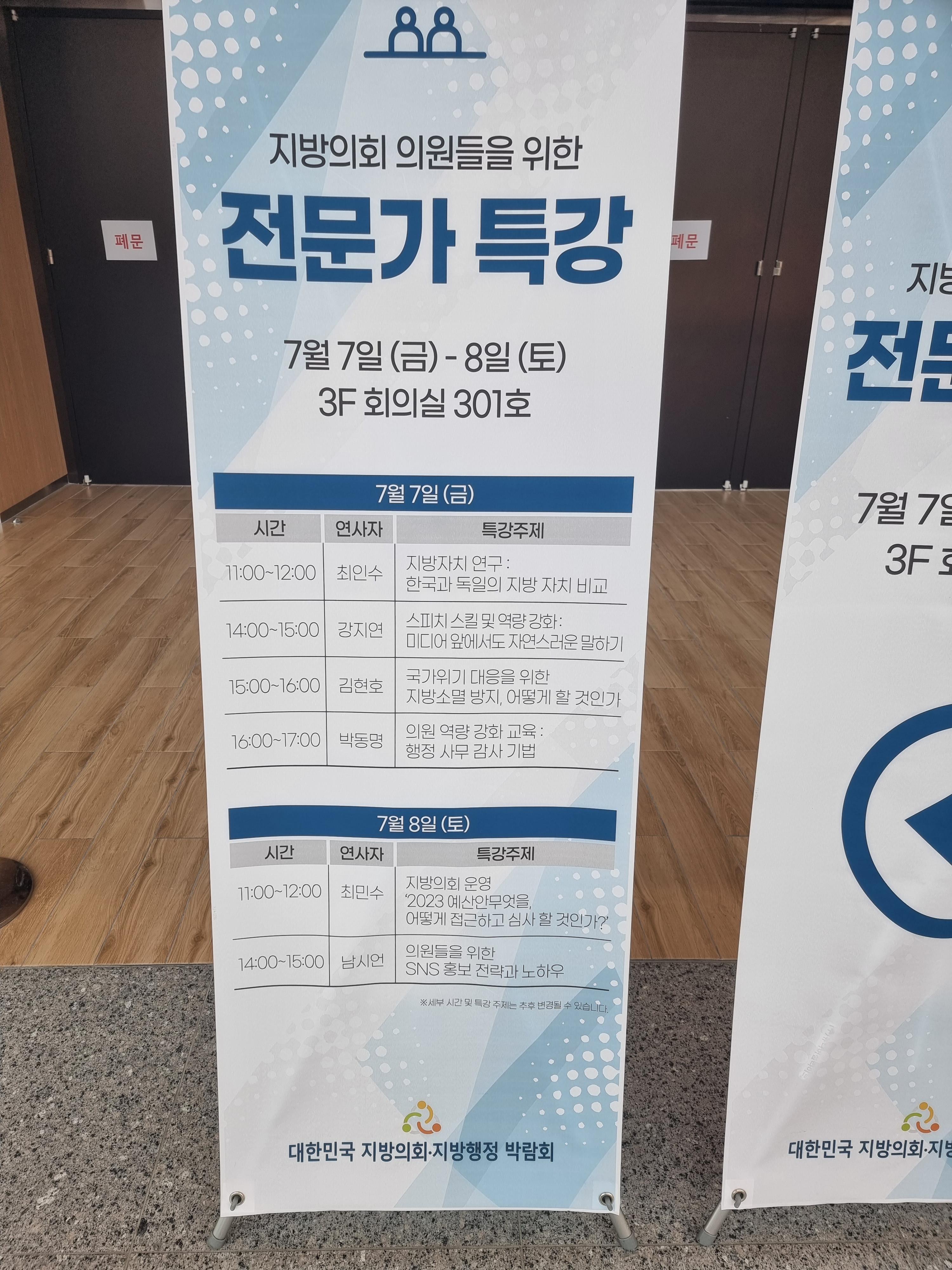 2023년 대한민국 지방의회 지방행정박람회는 대전컨벤션센터에서 열렸습니다. 저는 여기에 전문가 특강 마지막 꼭지로 초청받아서 강연을 다녀왔습니다.