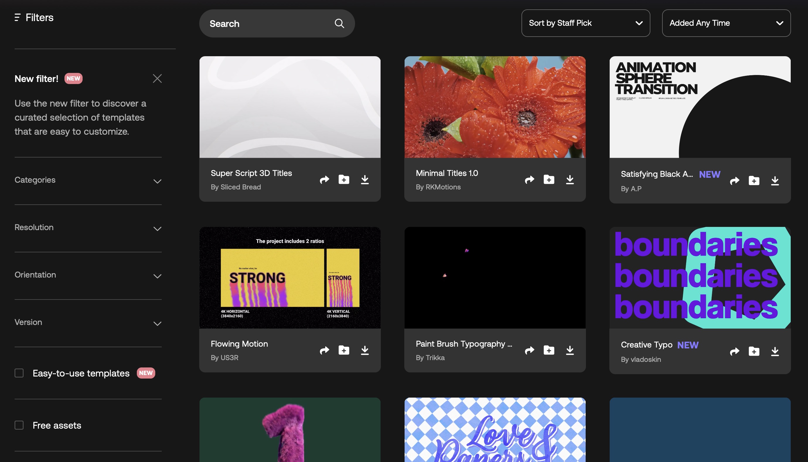 Create your projects with unlimited asset downloads: premium Templates, Presets, Stock Photos, video elements and a website builder - all in one membership!