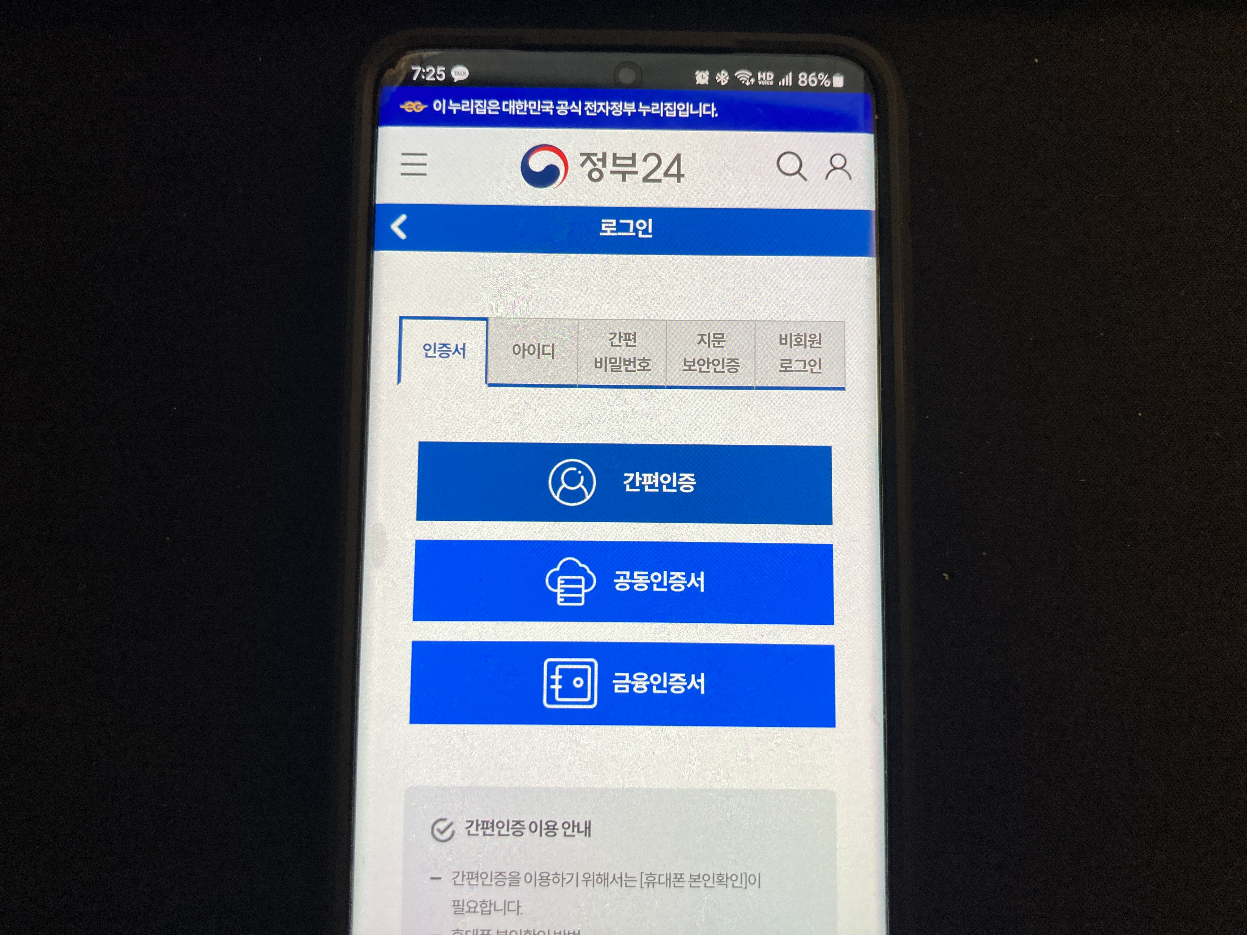 공동인증서와 금융인증서, 간편인증이 있는데, 저는 간편인증으로 진행하니까 편리하더라고요. 나머지는 또 인증서를 등록을 하라고해서 좀 번거롭습니다.