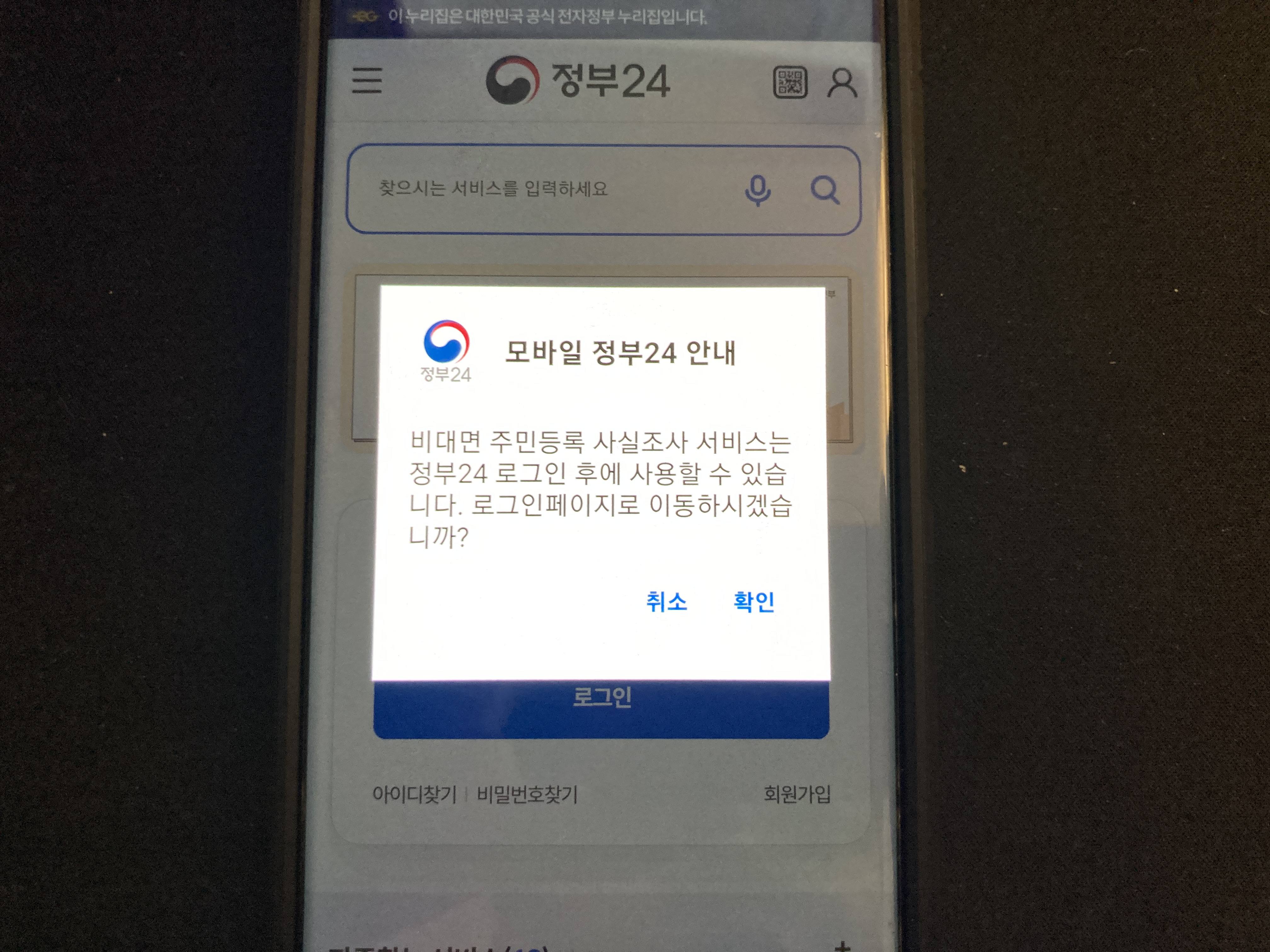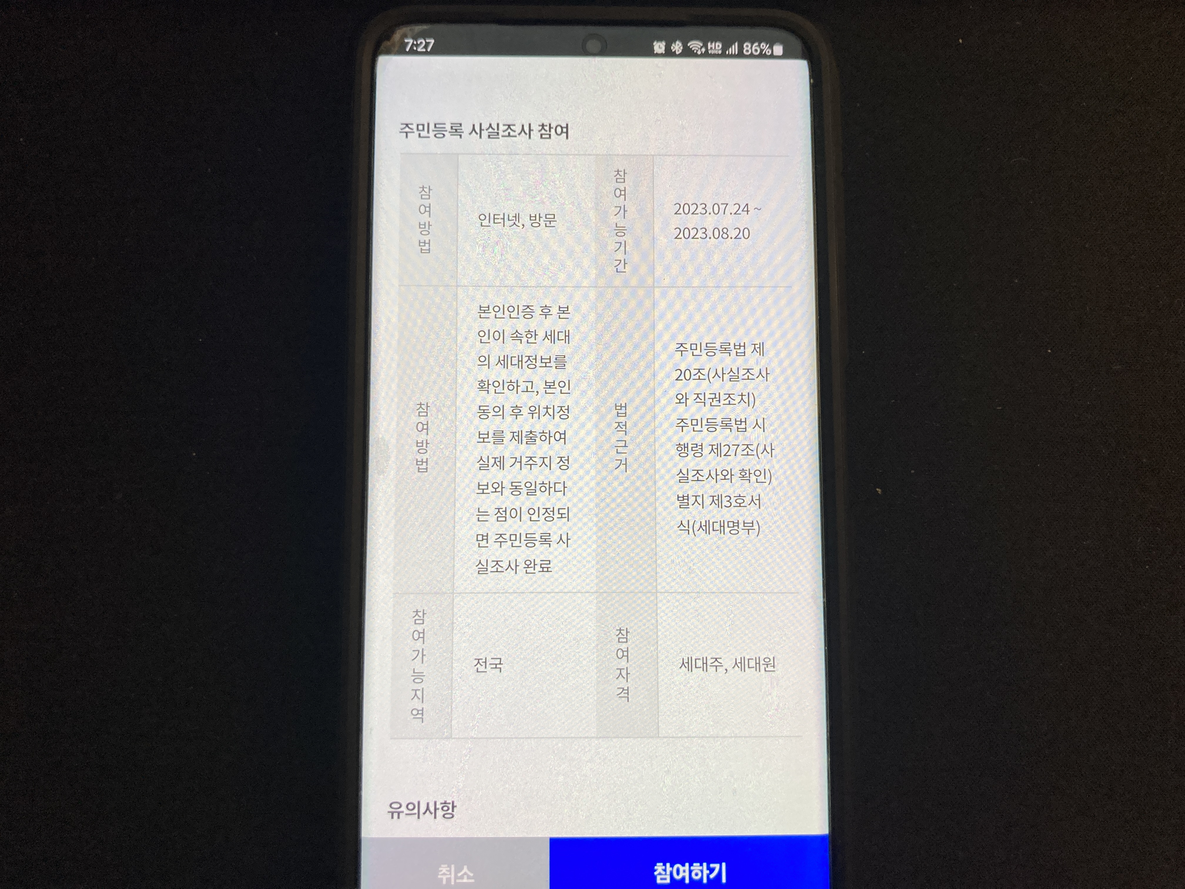 주민등록 사실조사 휴대폰으로 참여하는법 (정부24)