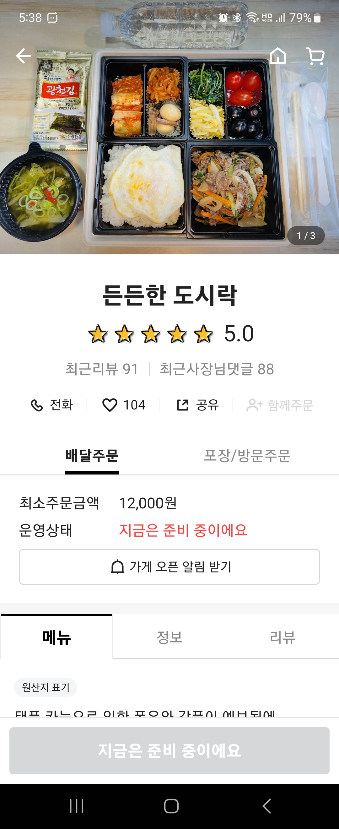 최소 주문금액도 12000원에 형성돼 있어서 기본 도시락 2개로도 최소주문을 채울 수 있었고요. 제가 여기를 여러번 주문해서 먹었는데 국이나 기타 반찬들이 종종 바뀌고 있고, 메뉴 구성이 단순해서 고민없이 주문해서 먹기에 정말 좋습니다.