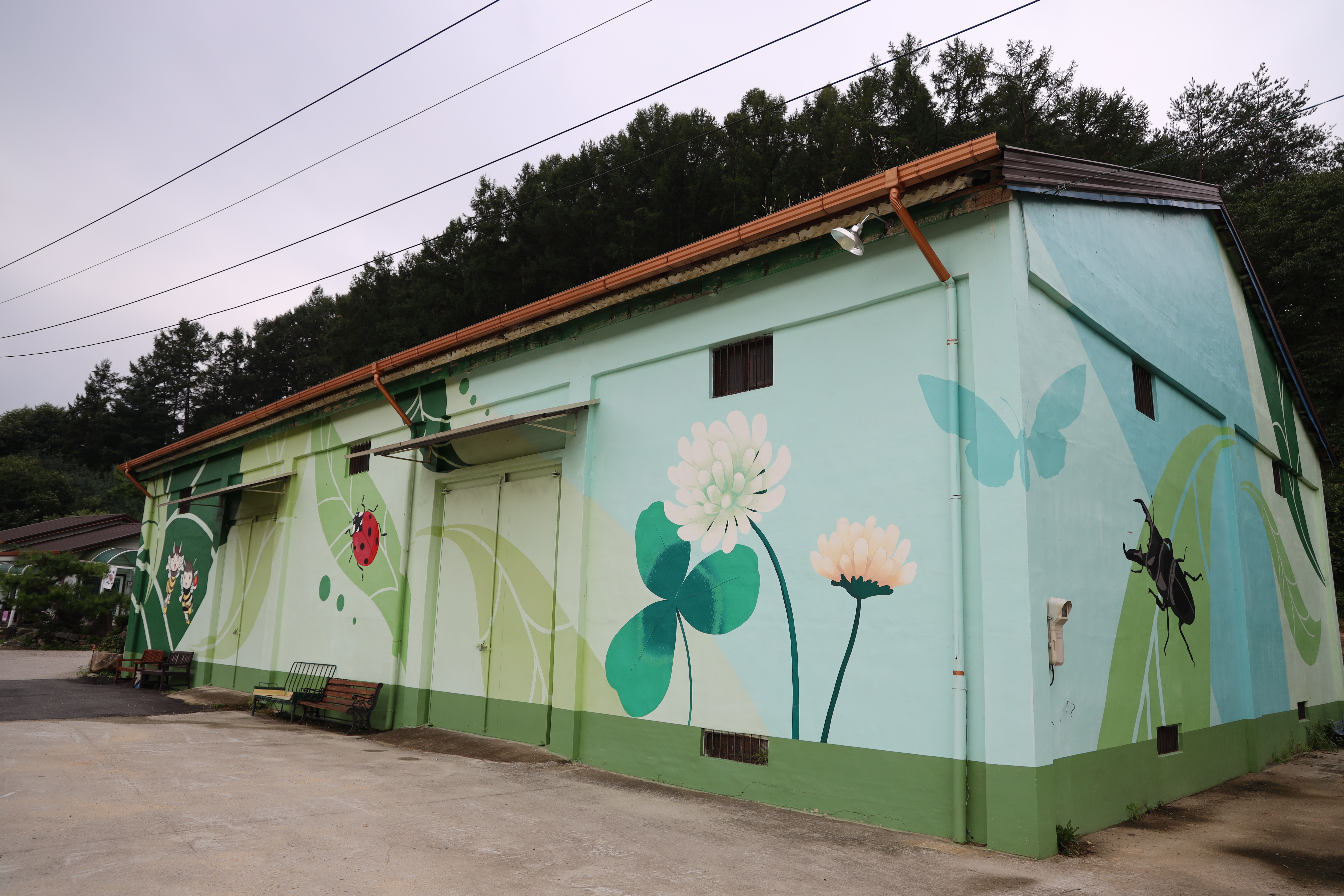 석송령 주차장 주변에는 예천에서 유명한 곤충을 모티브로 한 예쁜 벽화 그림도 그려져 있었는데요. 이 곳이 하나의 포토존이라고 할 수 있겠습니다.