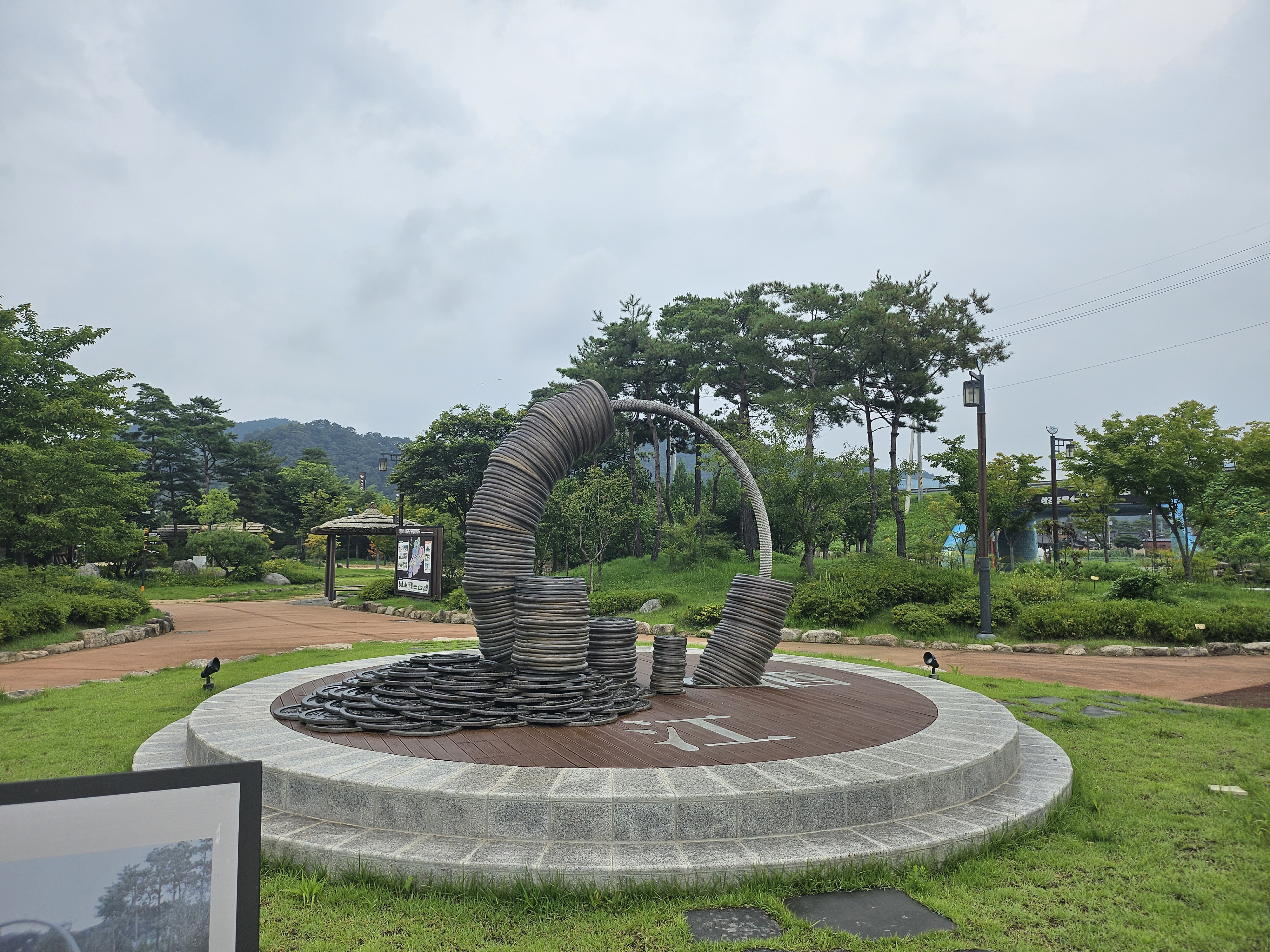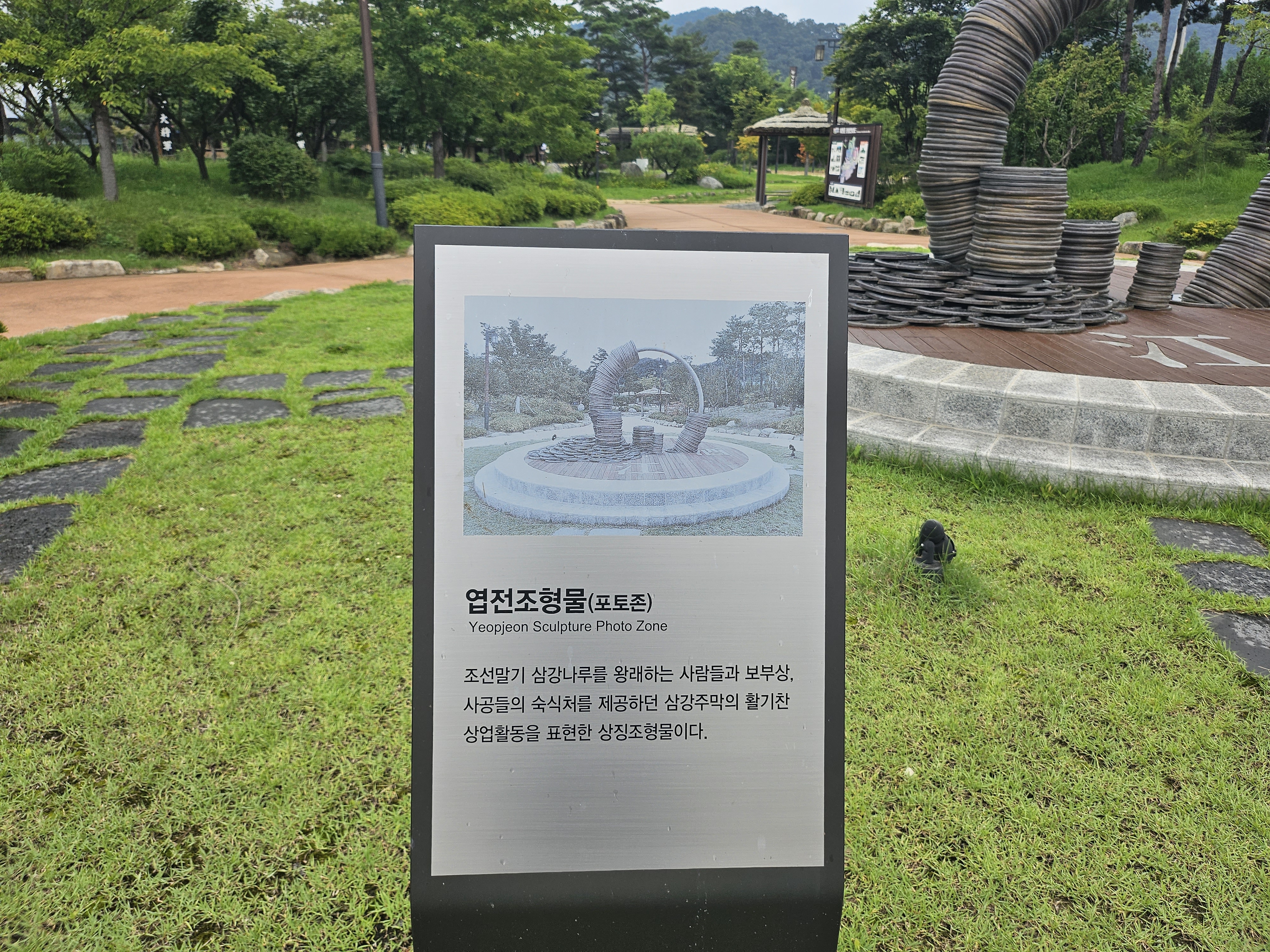 삼강주막 입구에서 조금만 걸어가면 엽전조형물 포토존이 있는데 삼강주막에서 가장 인기있는 포토존 중 한 곳입니다. 요즘에는 엽전을 사용하지 않기 때문에 엽전을 볼 일이 없잖아요. 삼강주막에서는 엽전 포토존을 볼 수 있습니다.