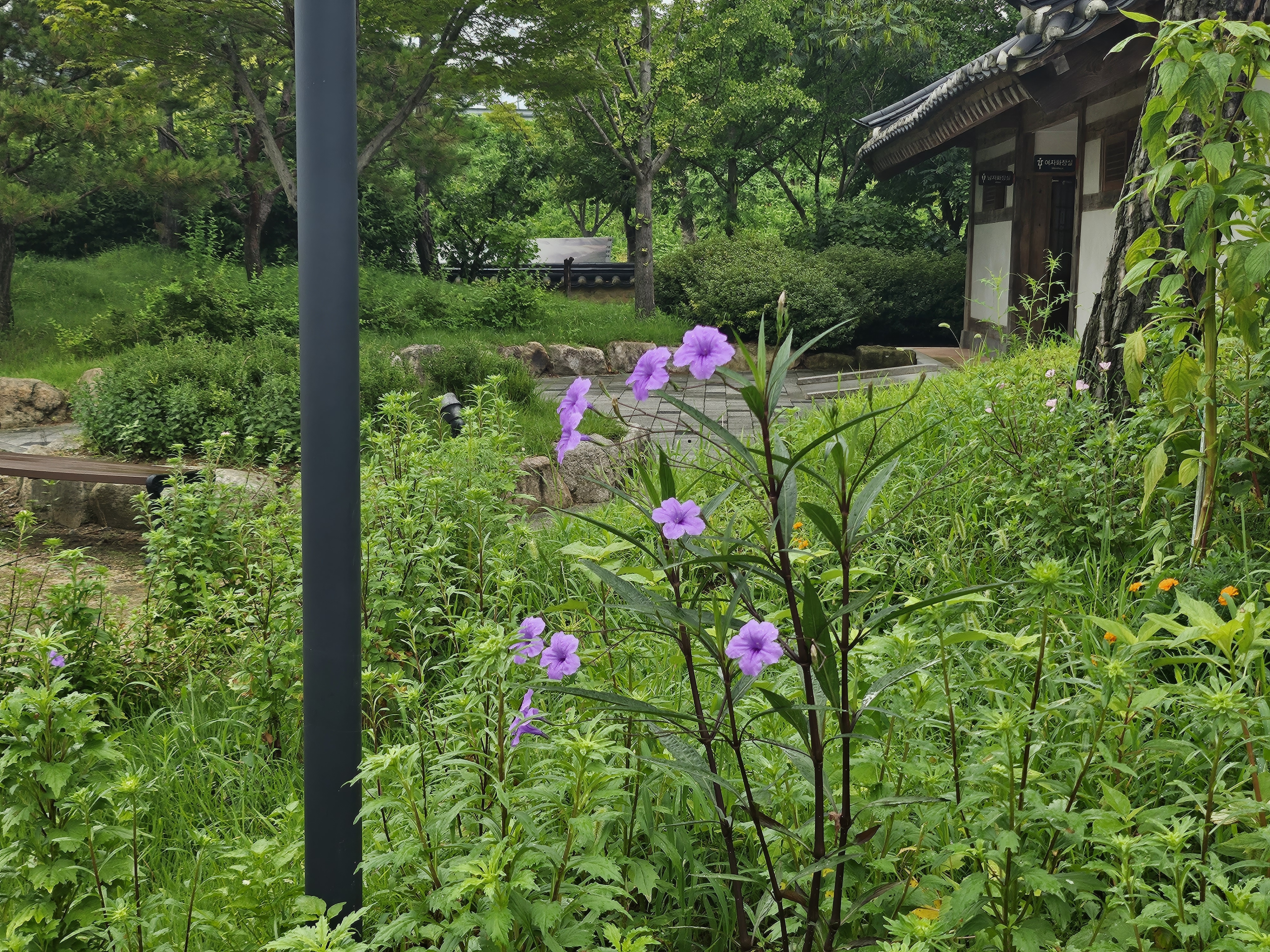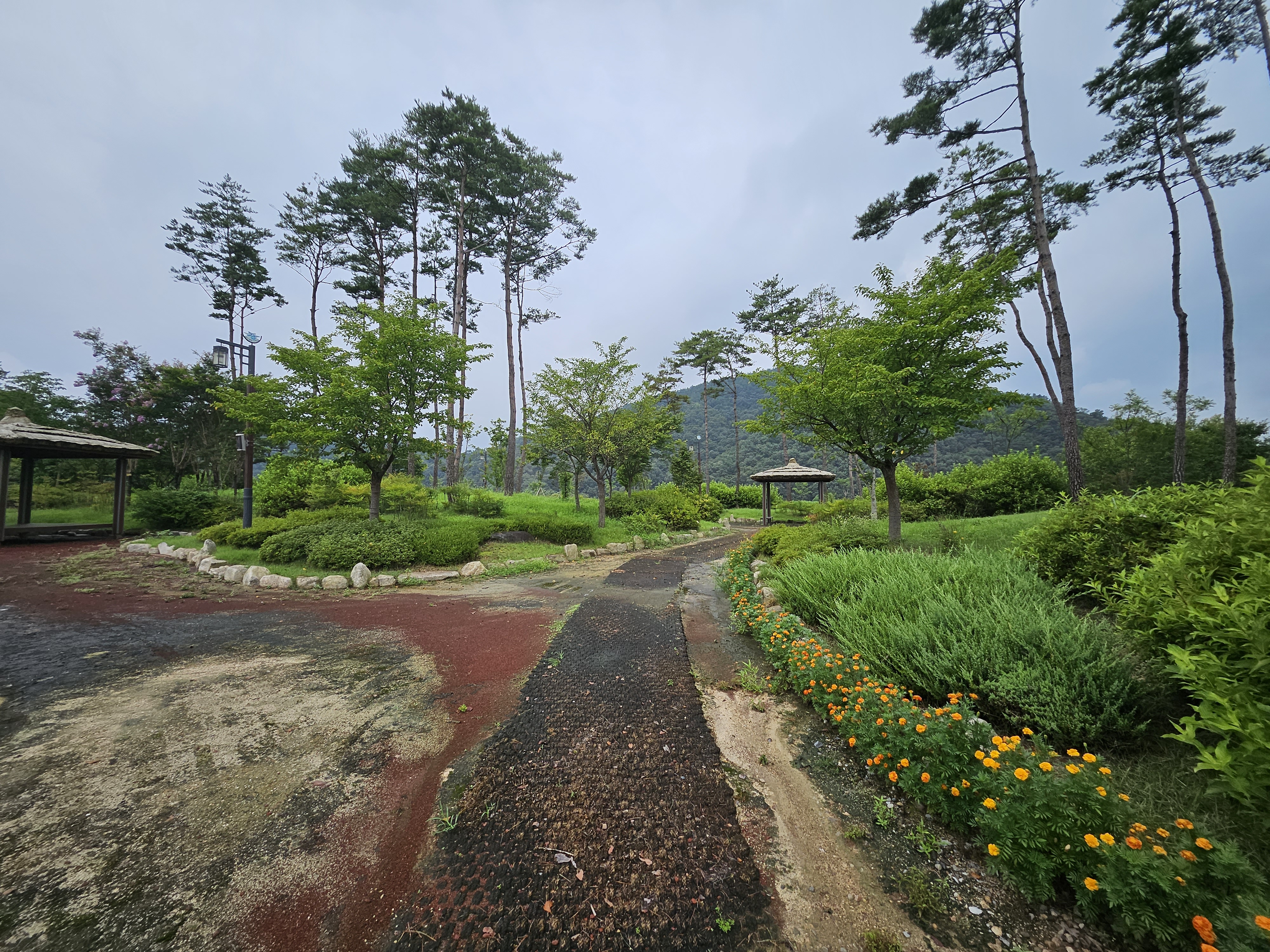 엽전 포토존을 거쳐 삼강주막 안쪽으로 들어가는 길입니다. 여기도 포장된 길과 함께 꽃들도 곳곳에 있고 푸른 주변 풍경이 참 예쁩니다.