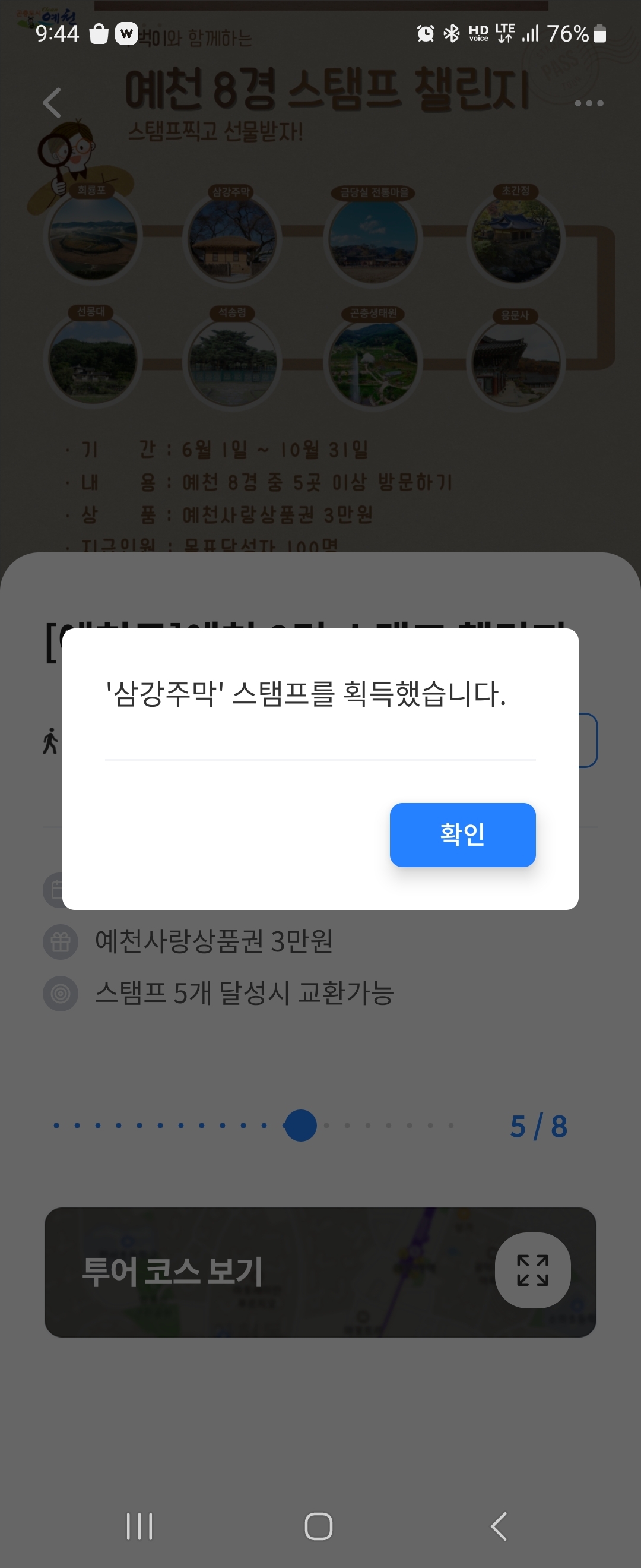 스탬프존 근처에 가면 이렇게 스탬프를 획득할 수 있습니다. 저도 어느덧 5개 이상 스탬프를 획득하였네요.