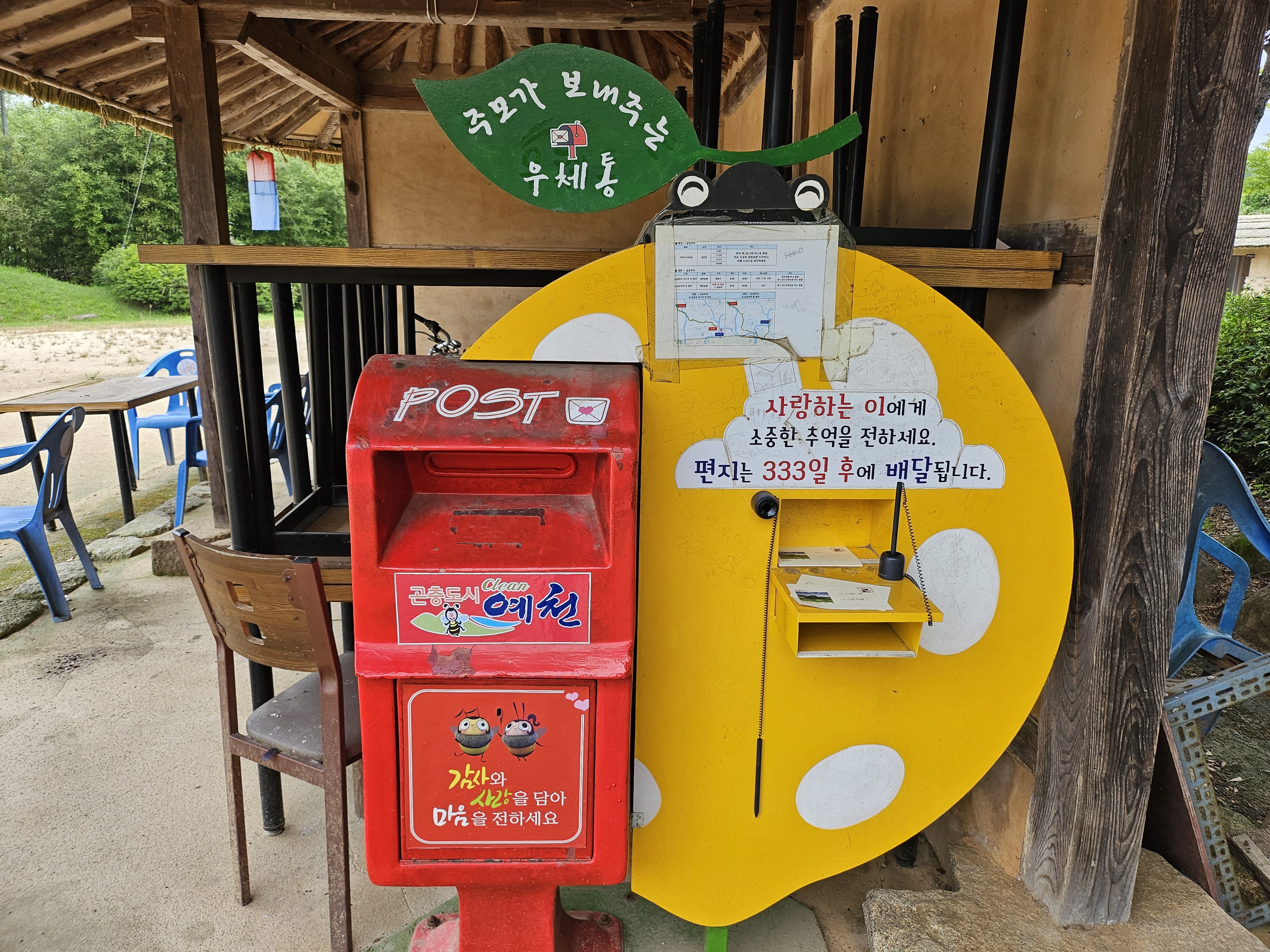 삼강주막에도 333일 후에 배달되는 편지를 쓸 수 있고 우체통도 있습니다. 자기 자신에게 쓰는 333일 뒤의 편지를 보내보는 것도 재미있는 경험이고 저도 종종 이용하는 편입니다.