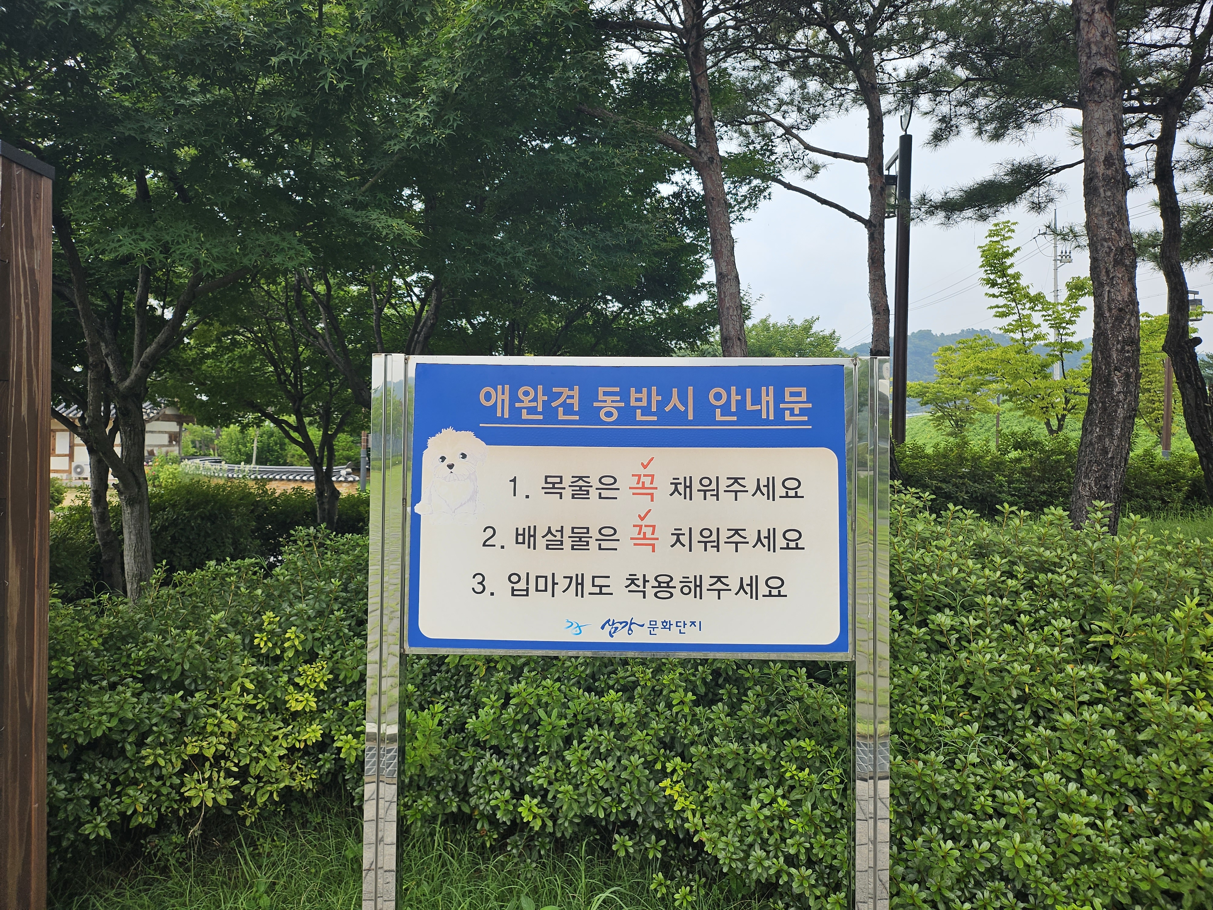 삼강주막은 애완견 동반으로도 출입이 가능한데요. 목줄을 채워주고 배설물을 치워주고 입마개 착용도 해달라고 강조하고 있으니 참고해주세요.
