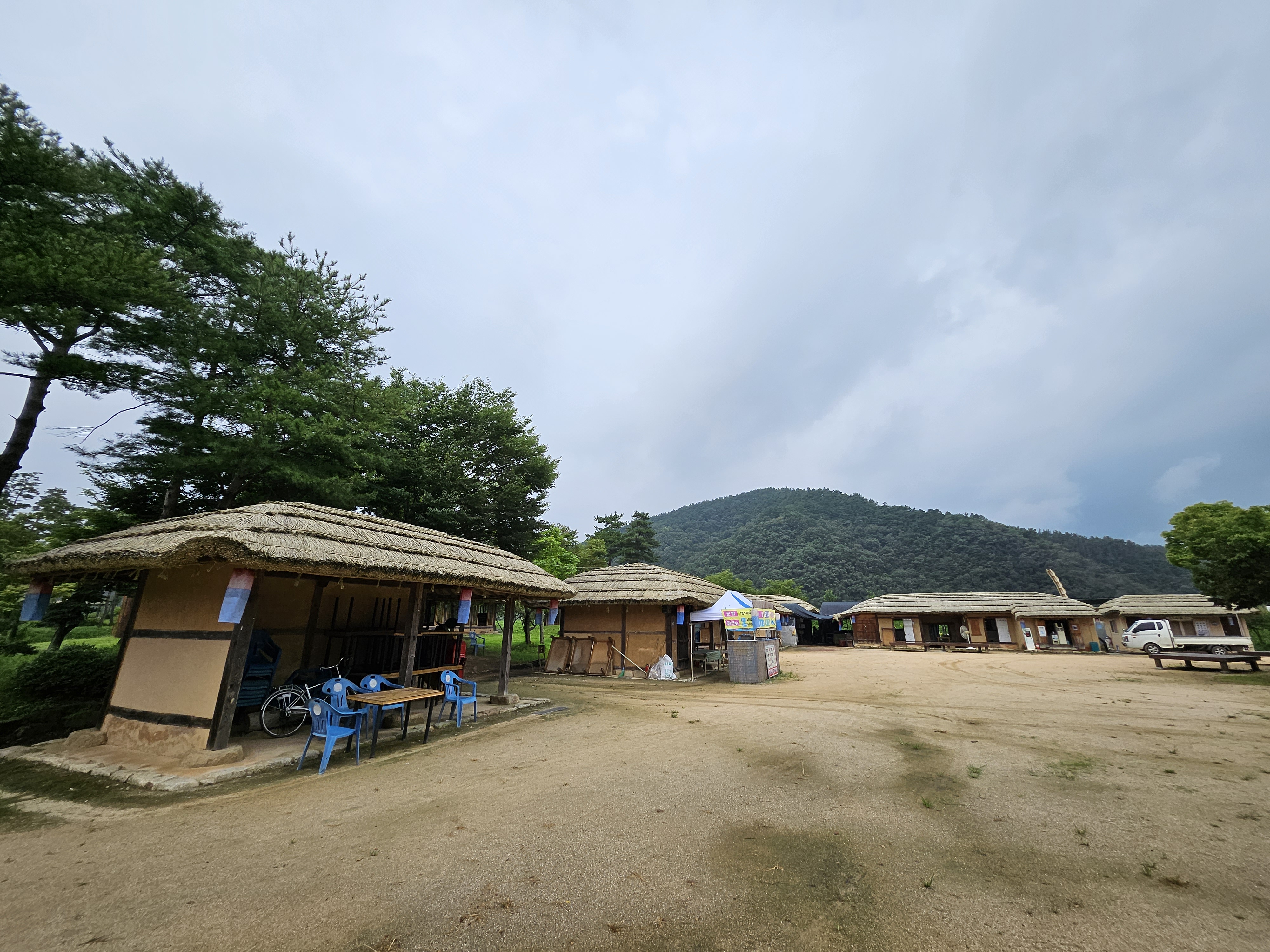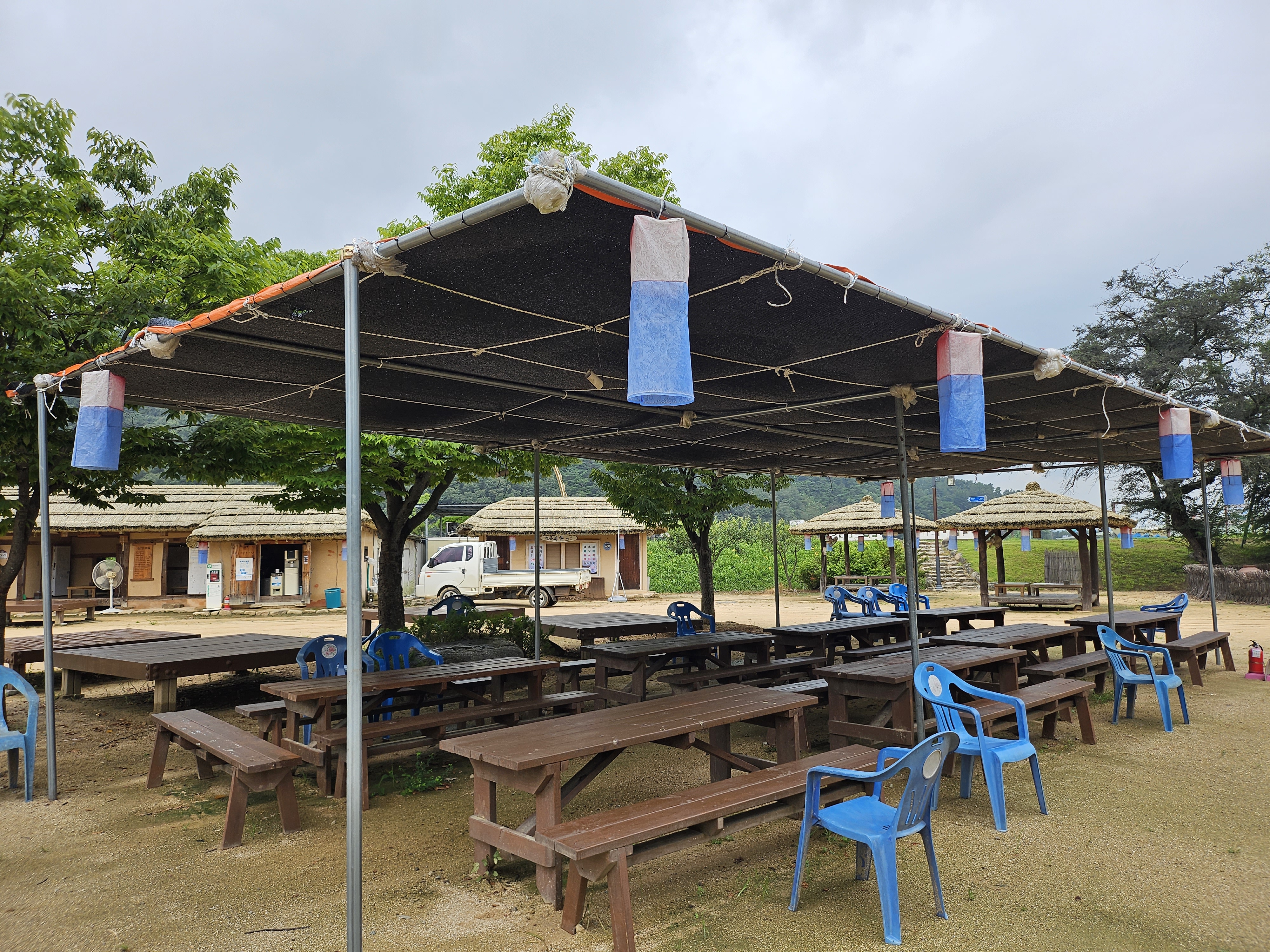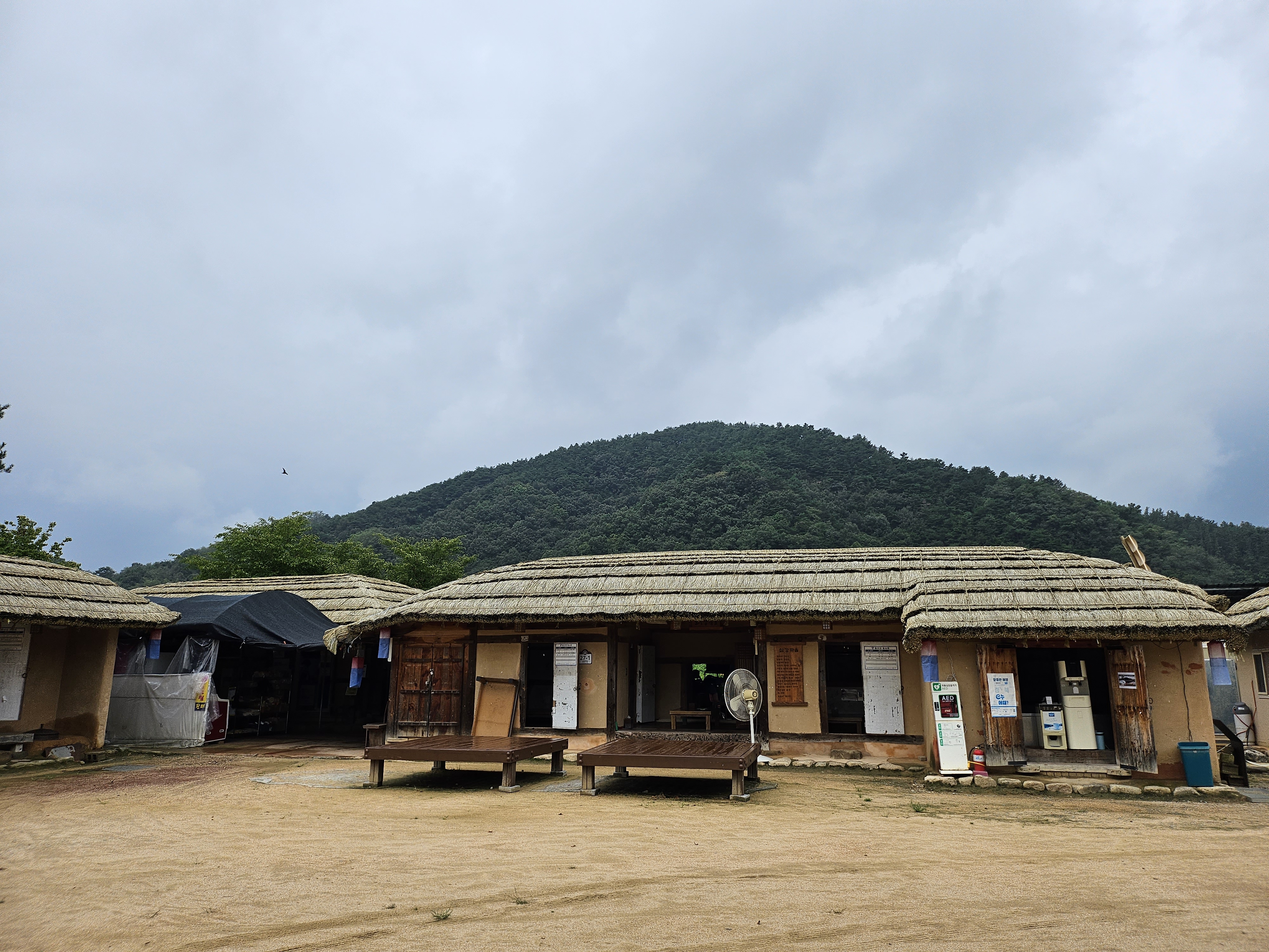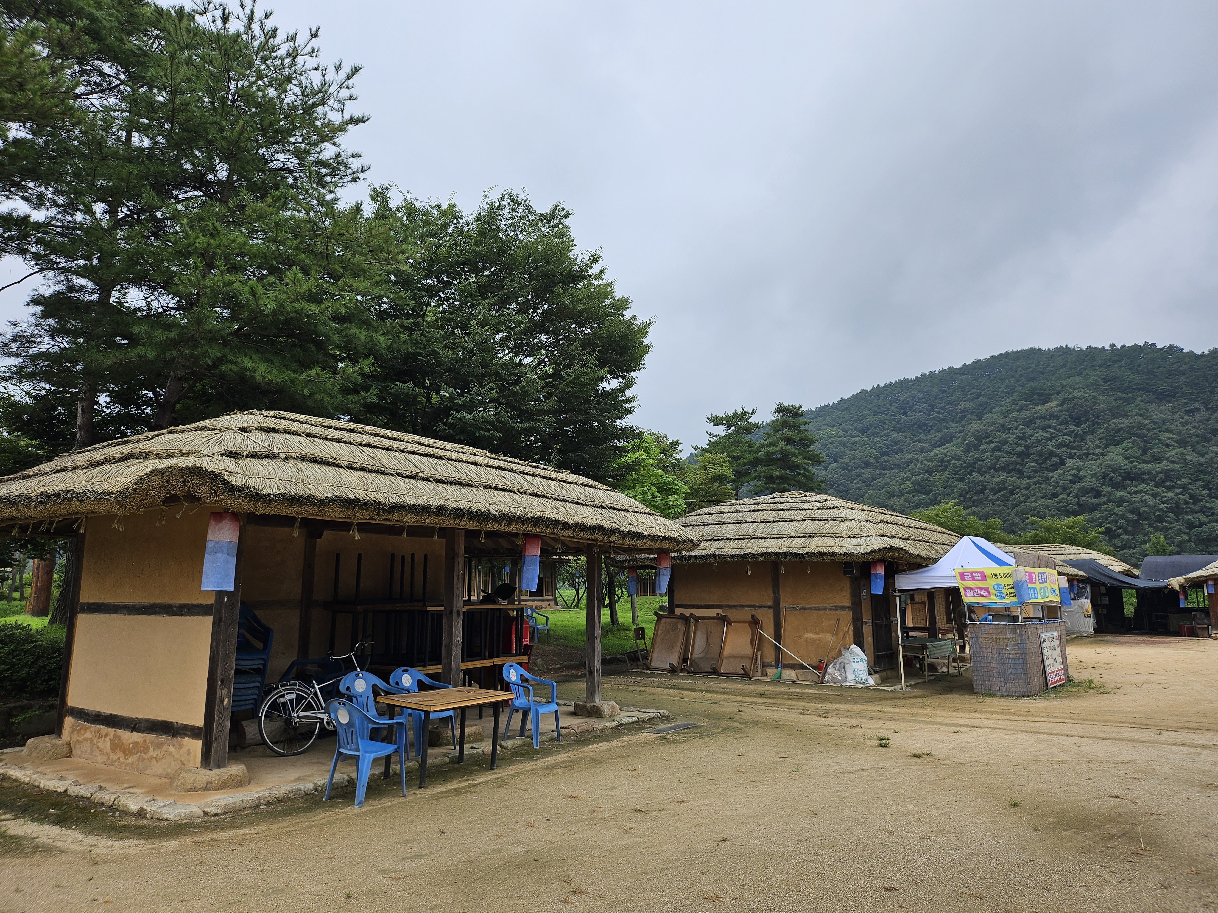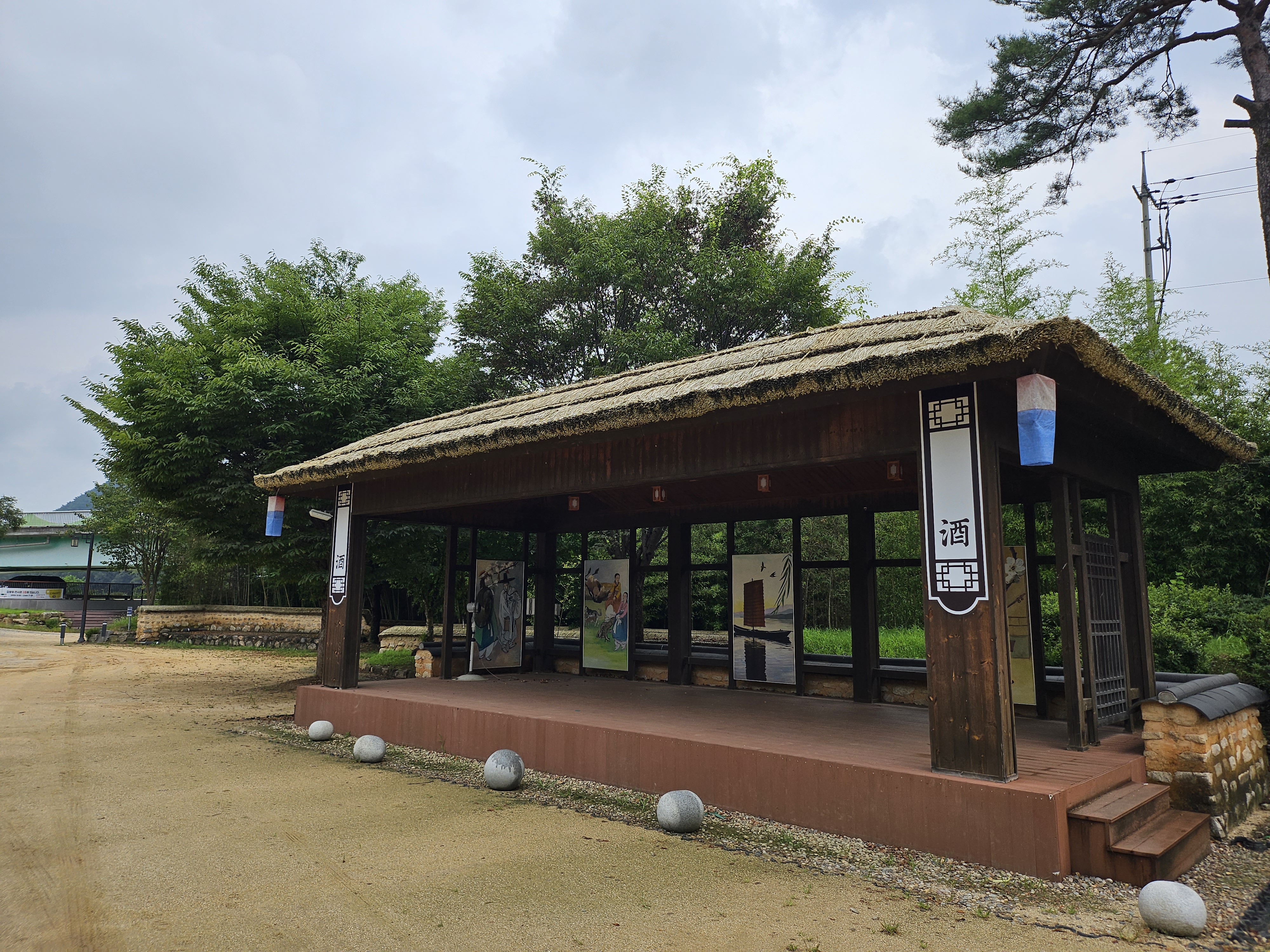 삼강주막은 전체적으로 굉장히 넓은 규모를 자랑하고 곳곳을 둘러볼 수 있도록 해두고 있는데요. 화장실도 옛 건물 스타일로 지어져 있고 곳곳에 초가지붕을 이용한 쉼터 등도 눈에 띄어서 타임머신을 타고 과거로 되돌아간 듯한 느낌을 주는 곳입니다.
