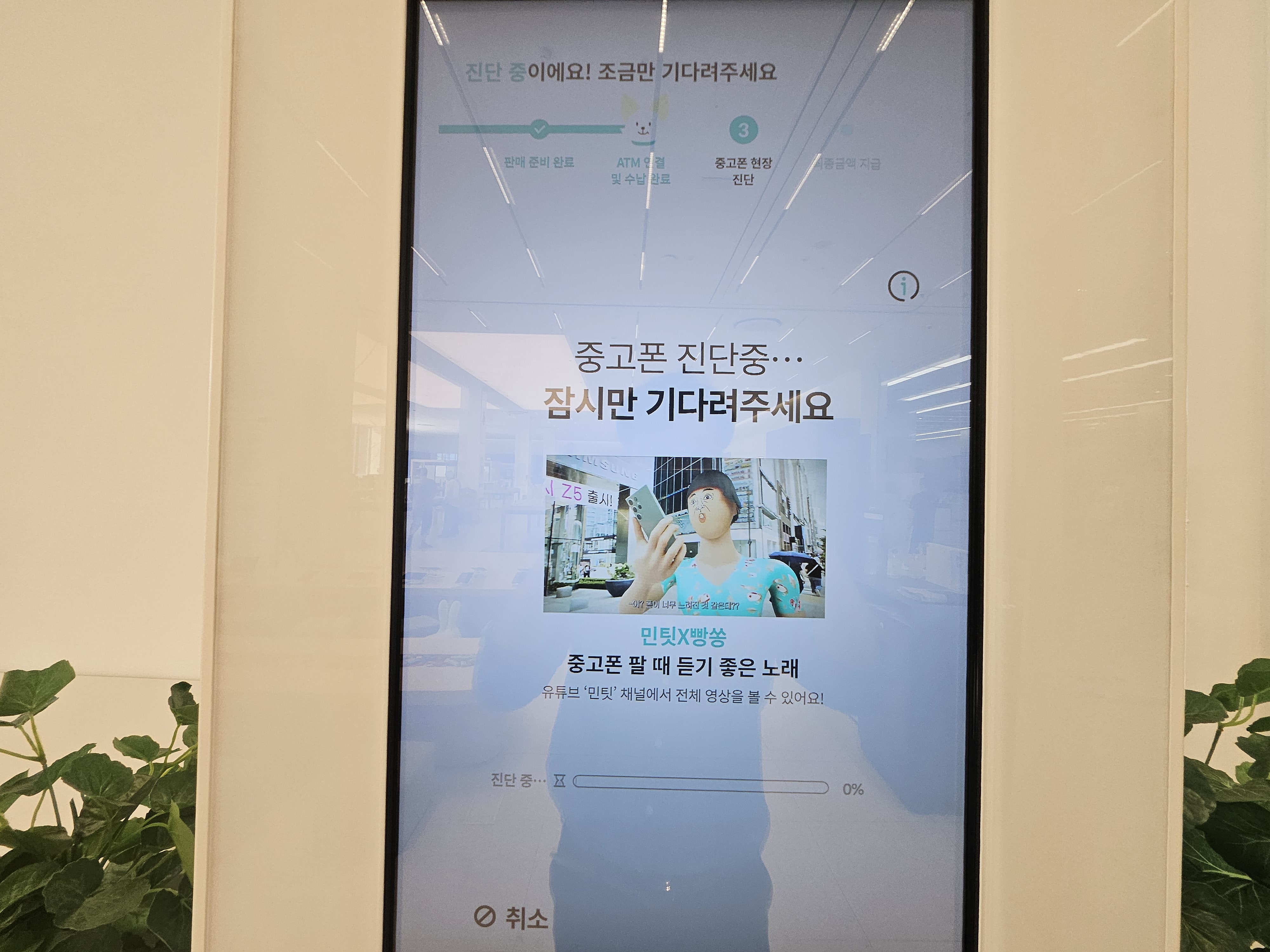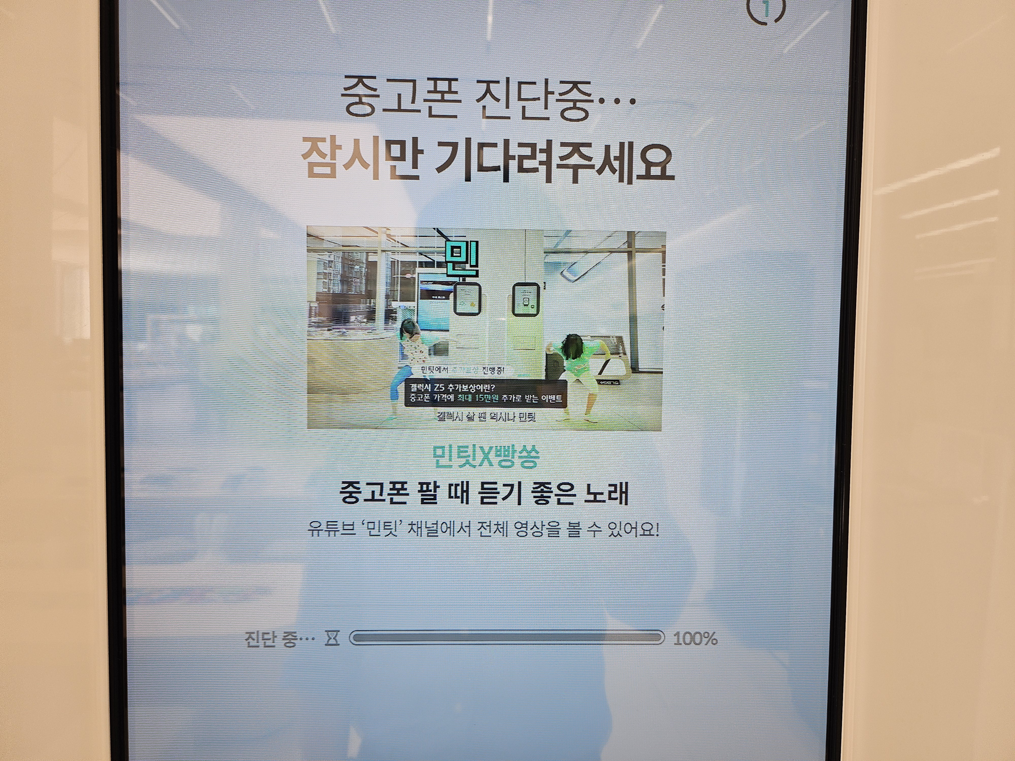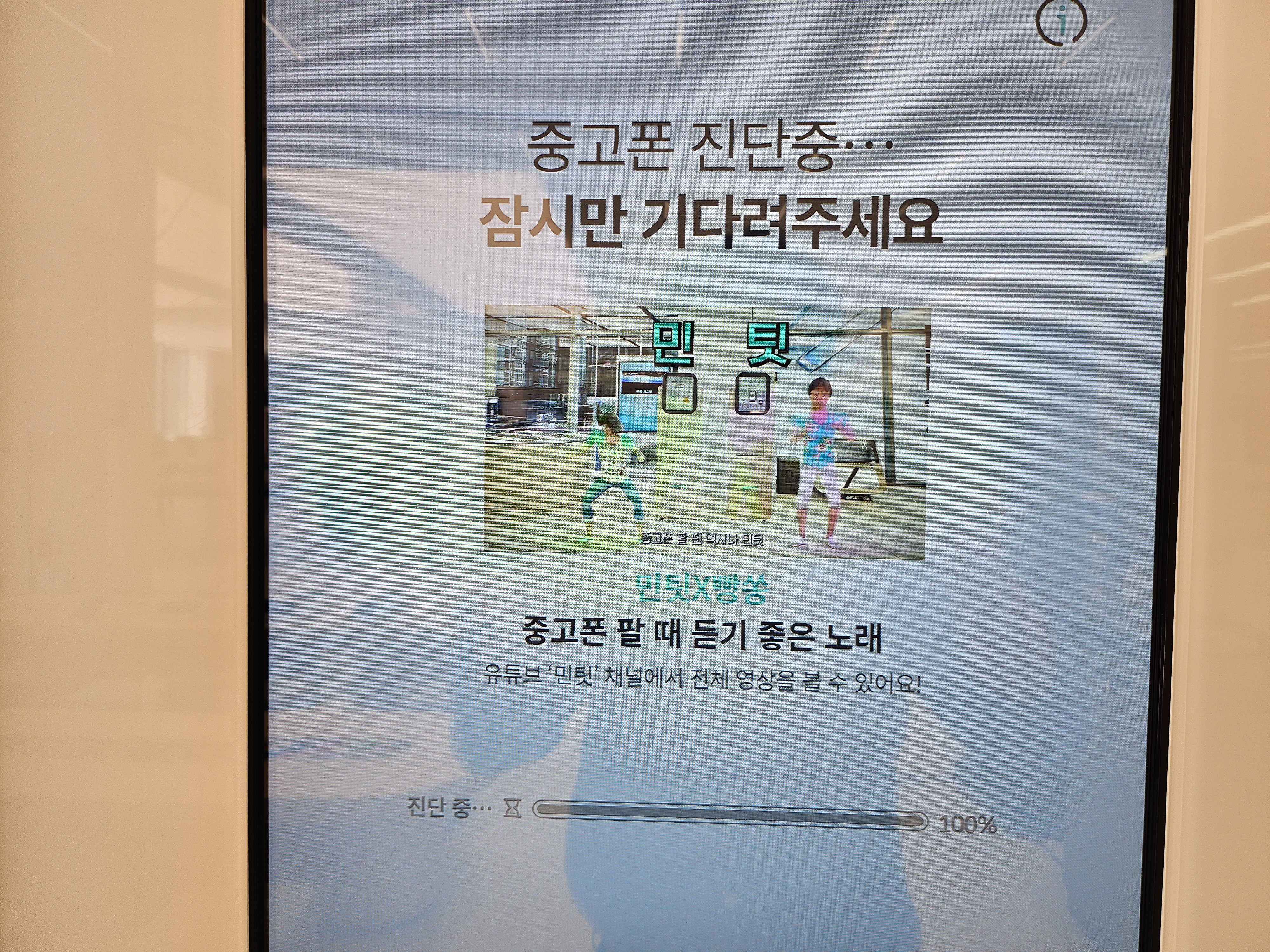 이제 폰 넣고 기다리다보면 수납함이 닫히고요. 그 다음 중고폰 진단중... 이라고 나옵니다.