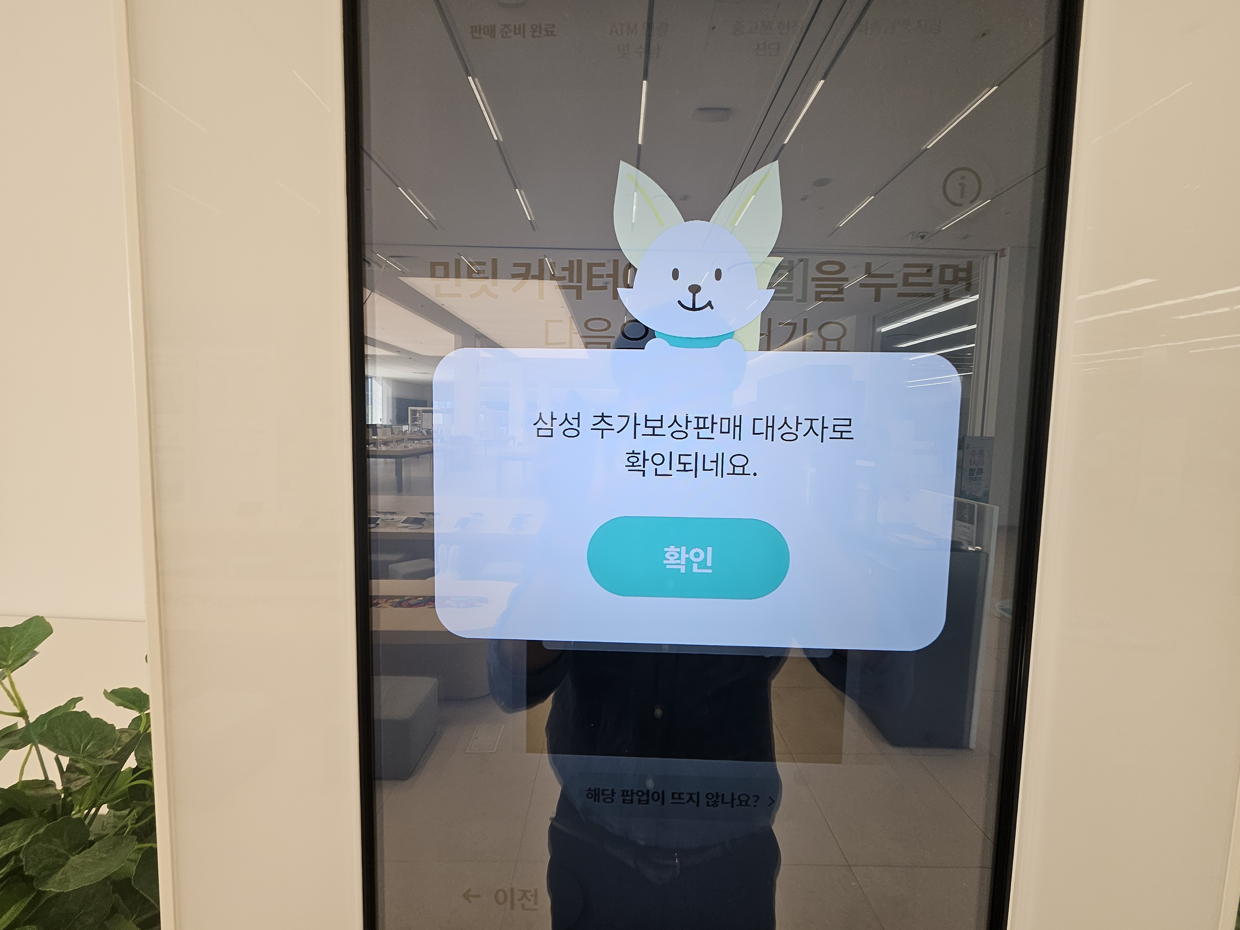 여기에서 다음을 누르게 되면, 삼성 추가보상판매 대상자로 확인된다는 메시지가 나옵니다. 이 메시지가 나와야 추가보상금액이 책정되는거라고 하더라고요. 사실은 그전에 카톡으로 민팃에서 카톡이 오는데... 만약 이 카톡이 안오면, 구매처에 문의해서 트레이드인 사전예약 추가보상금 제대로 신청되었는지 확인을 해보면 됩니다.
