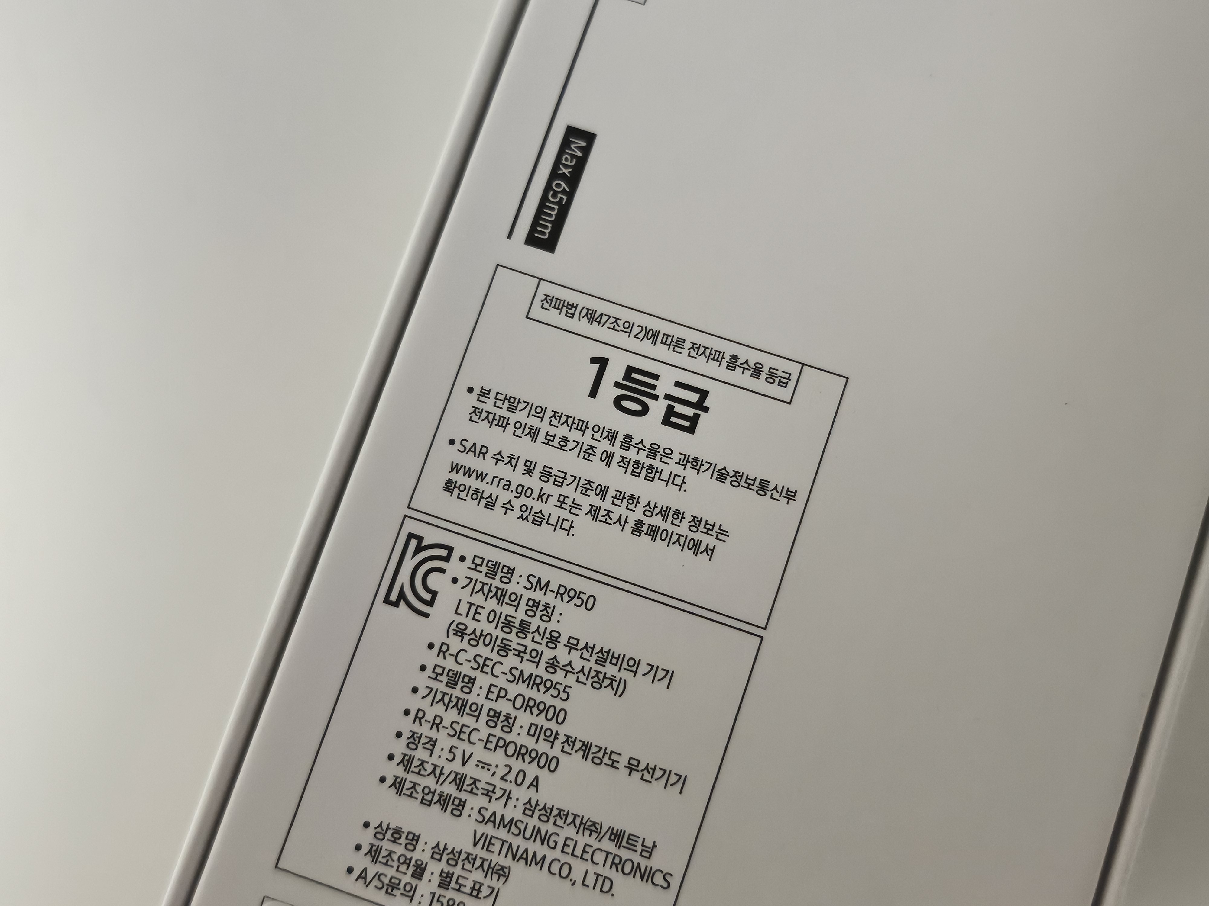 전파 인체 흡수율은 1등급이라고 하네요. 모델명은 SM-R950NZSACB1이라고 돼 있네요.(카톡에 적혀있음)