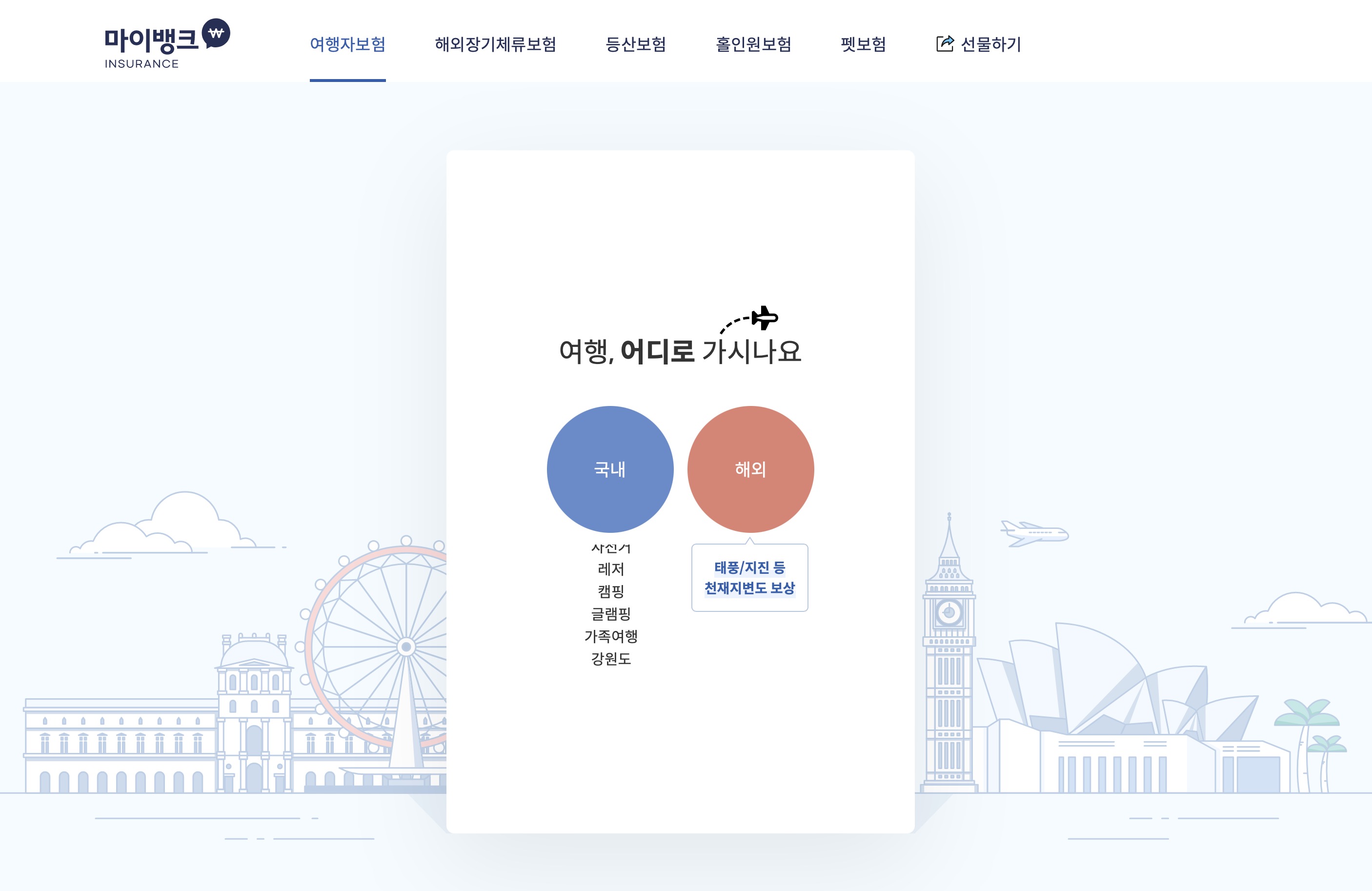 그런데 저는 성격상 돈보다도 일단은 마음이 편하고, 신경을 덜 쓰는걸 우선시하기 때문에... 이번에도 여행자 보험을 가입하기로 했고, 몇 군데 블로그나 카페 리뷰를 찾아보니 마이뱅크에서 가입하는분들이 많은것 같아서 마이뱅크를 통해 가입해보았습니다.