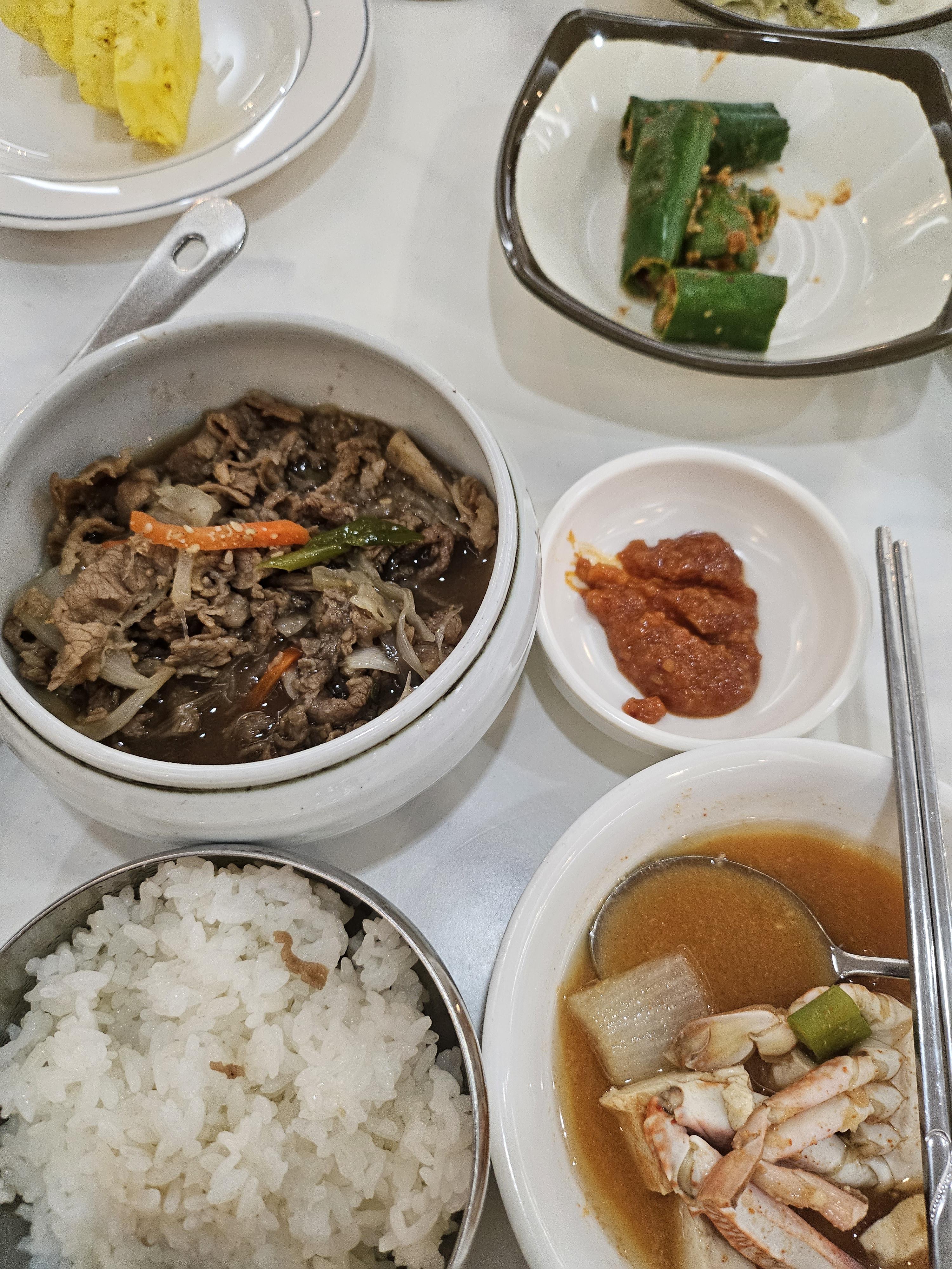 강의가 끝나고 단체로 식사를 하게 해주셔서 맛있게 잘 먹었습니다. 경주 더케이호텔 식사가 괜찮더라고요. 꽃게탕과 불고기가 나왔는데 맛있었어요.